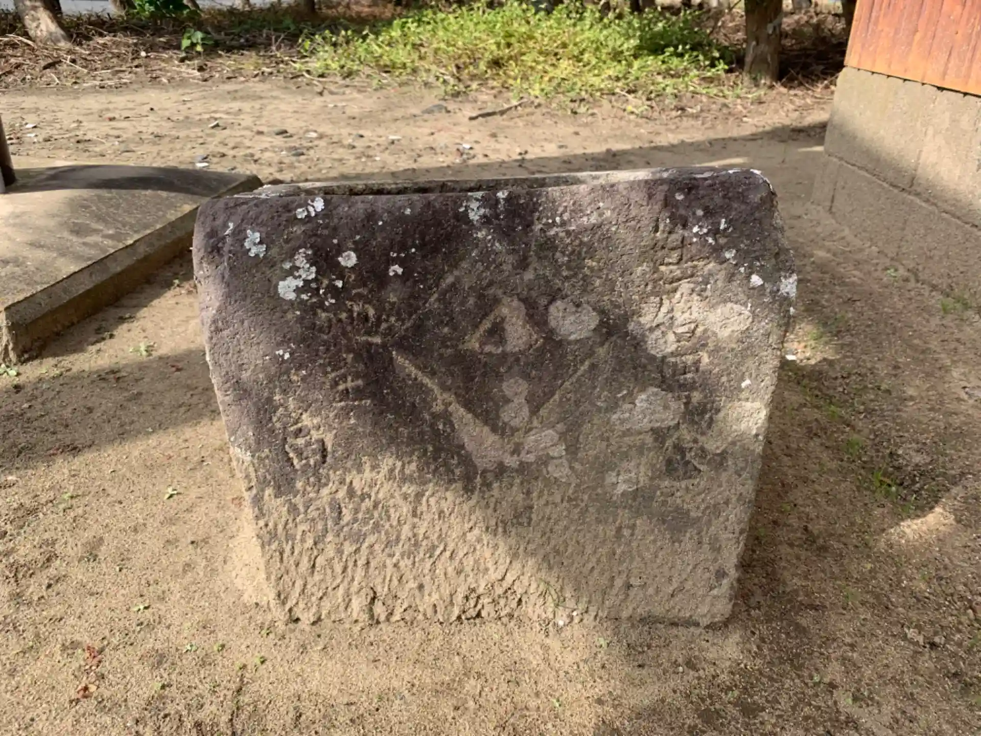 集会所を兼ねた神社。手水鉢は宝暦のものでした。