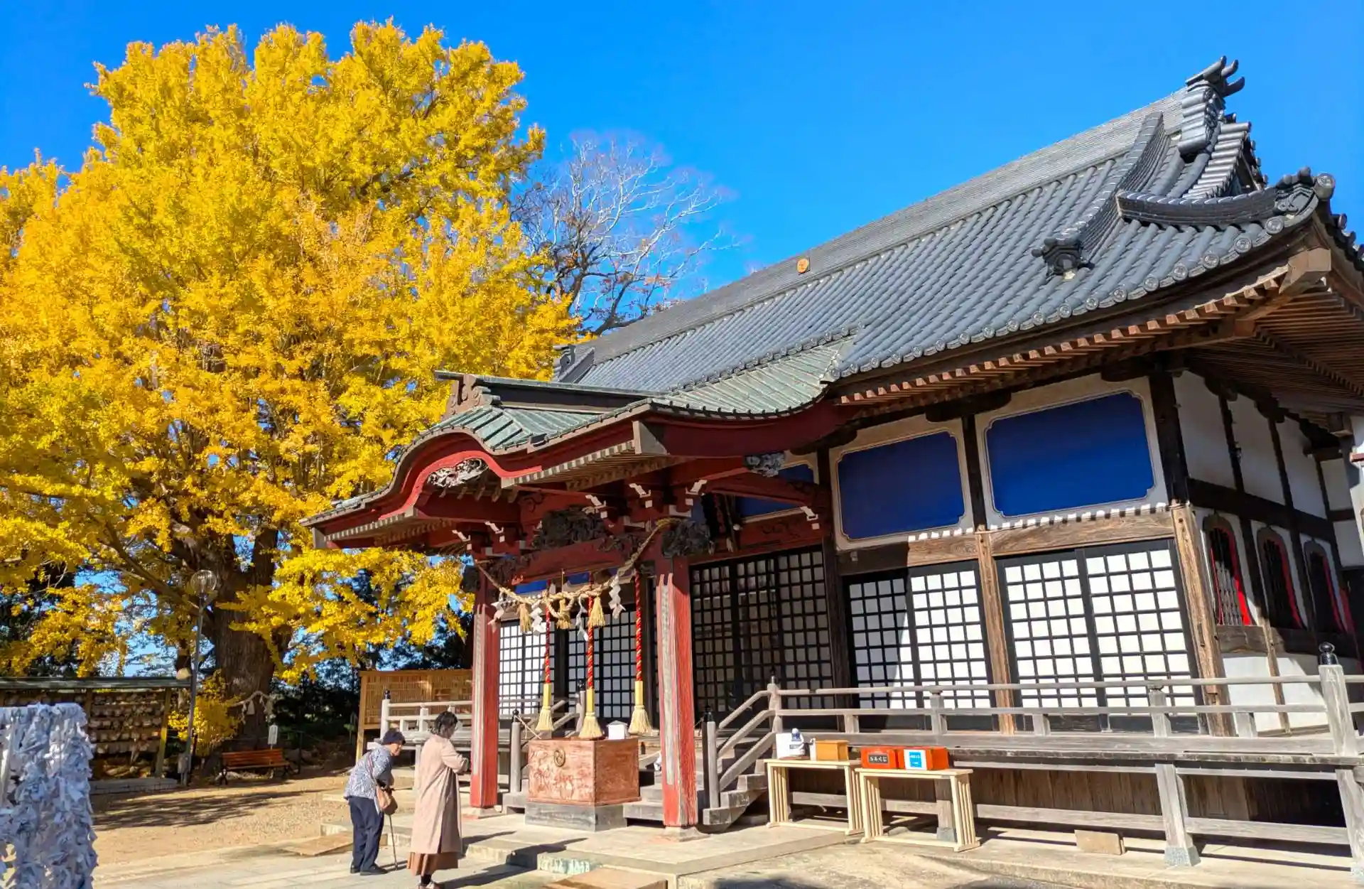 図らずもご神木の大銀杏が紅葉真っ盛り。すばらしい。