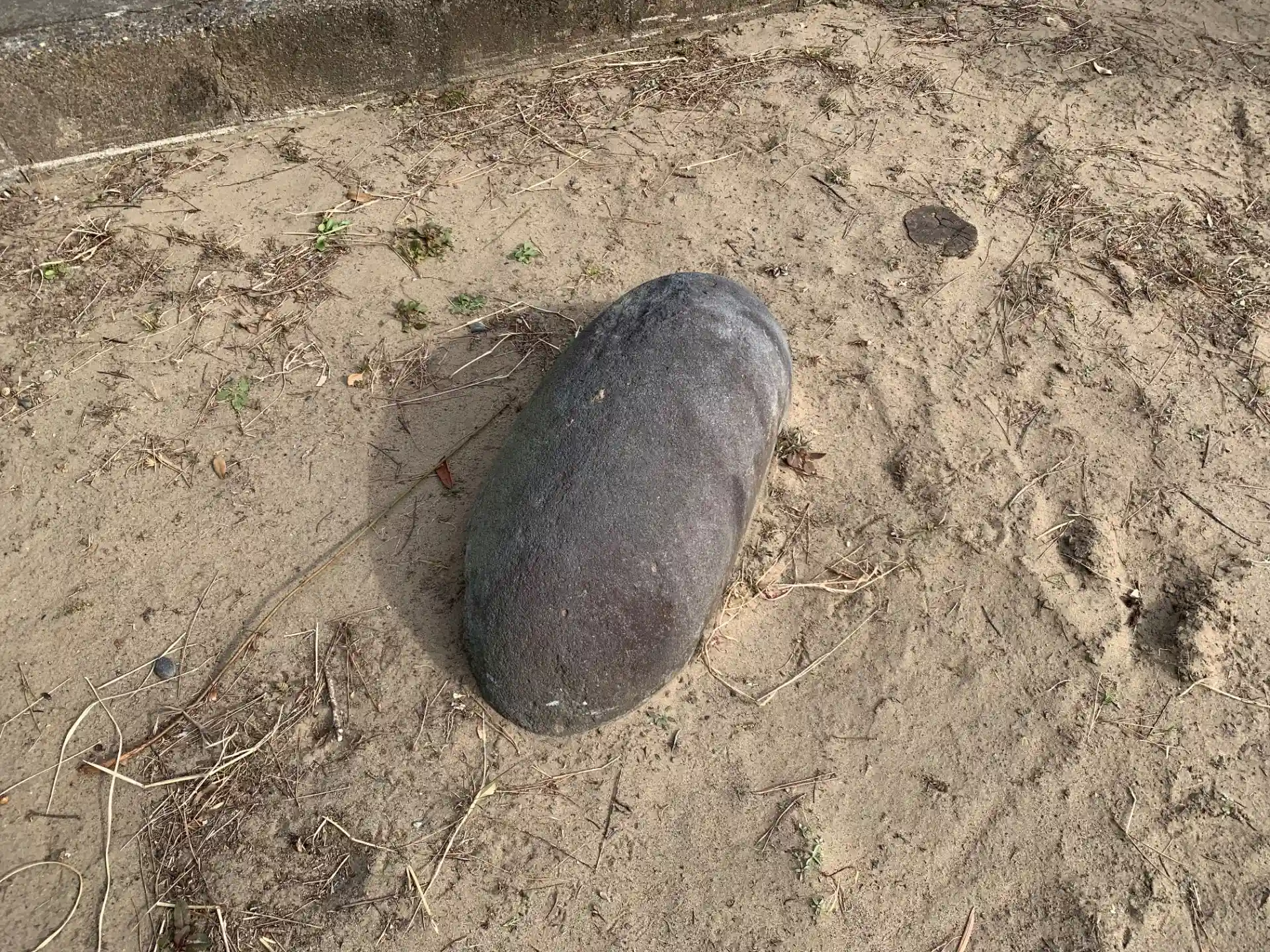 集会所を併設した神社。境内に力石がいくつか転がっています。