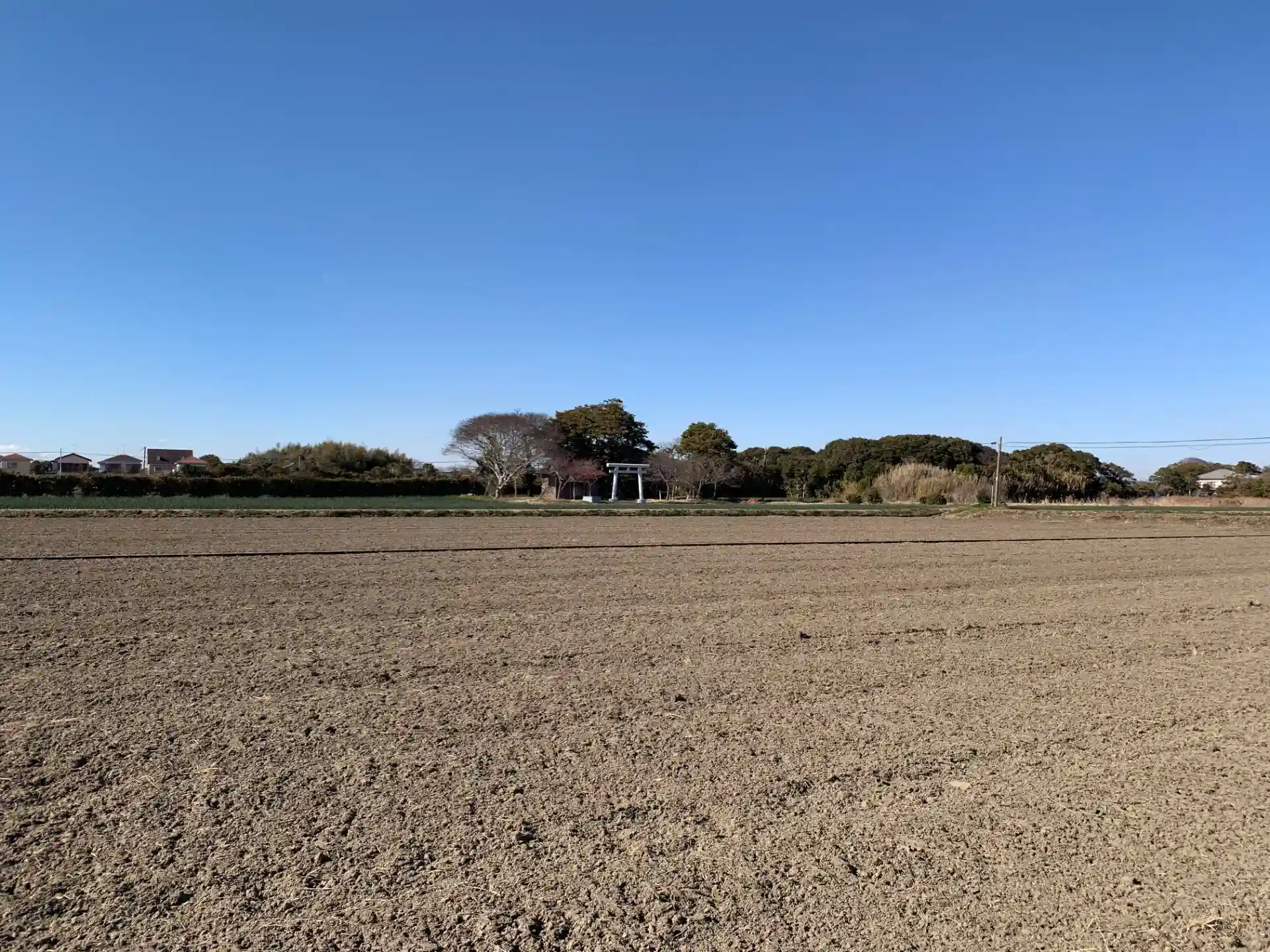 白子町名物の玉葱畑に囲まれた神社。ここから真っ直ぐ海へ行くとこの神社に対応する浜鳥居があります。