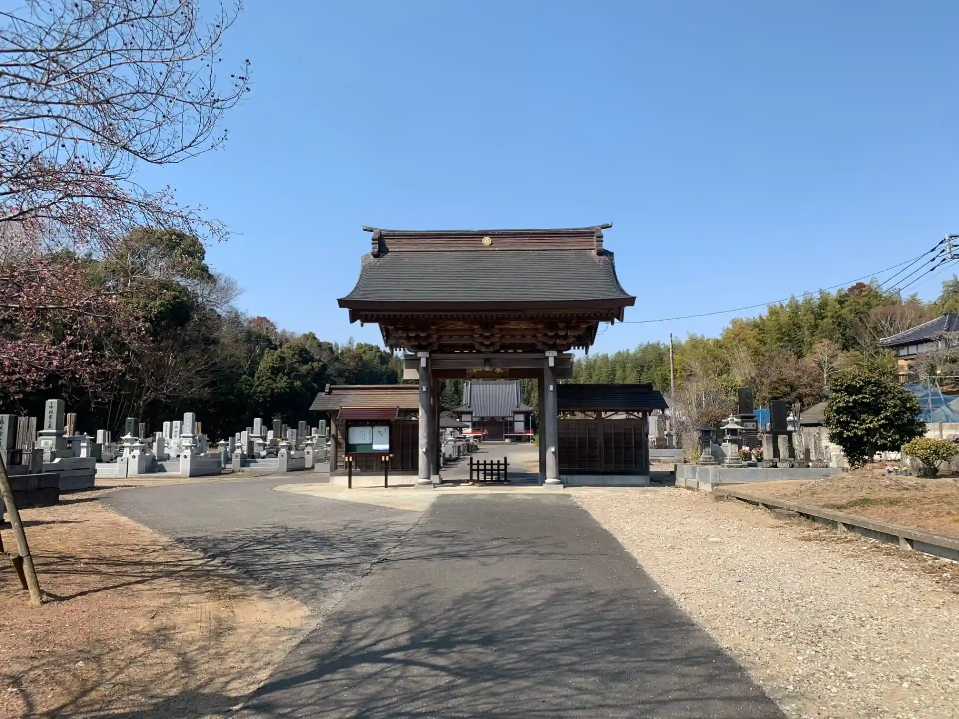 山門の向こうに参道を兼ねた広大な墓域を持つお寺。