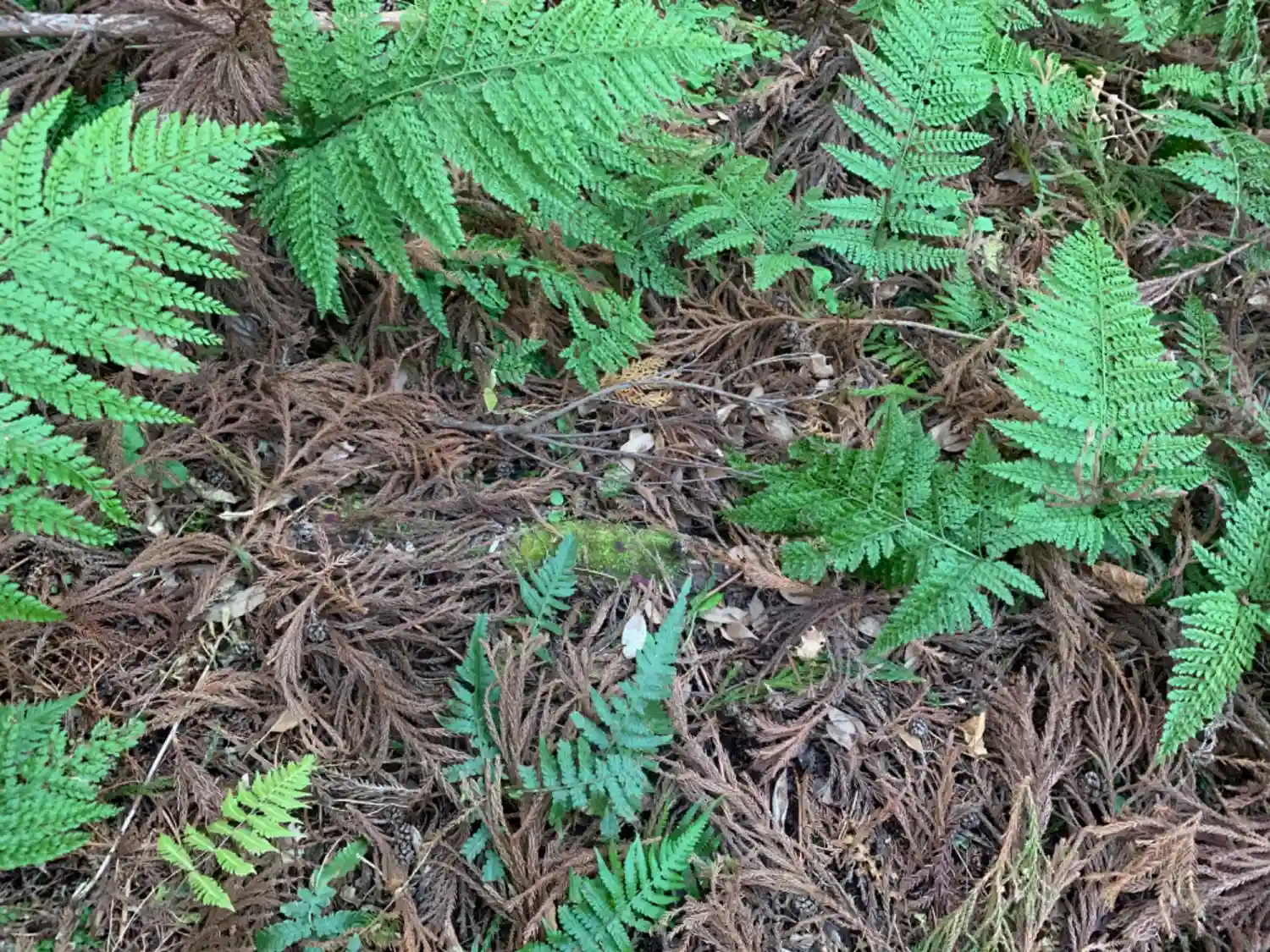 画面中央の苔が足場の丸太。