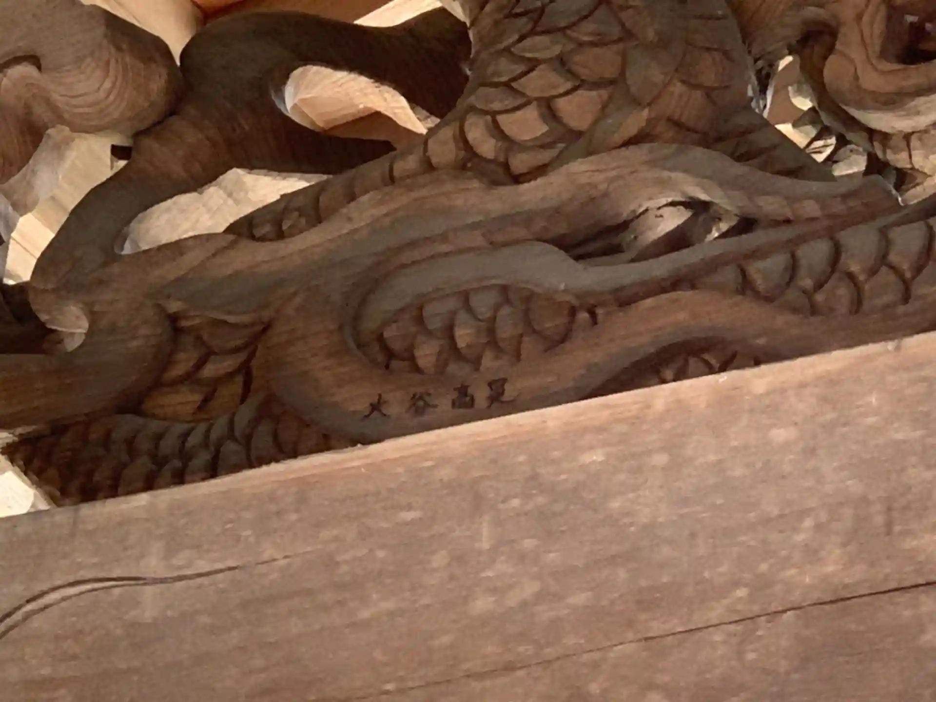 社殿の彫刻は大谷高晃。大谷家は獅子の背面が特徴的です。