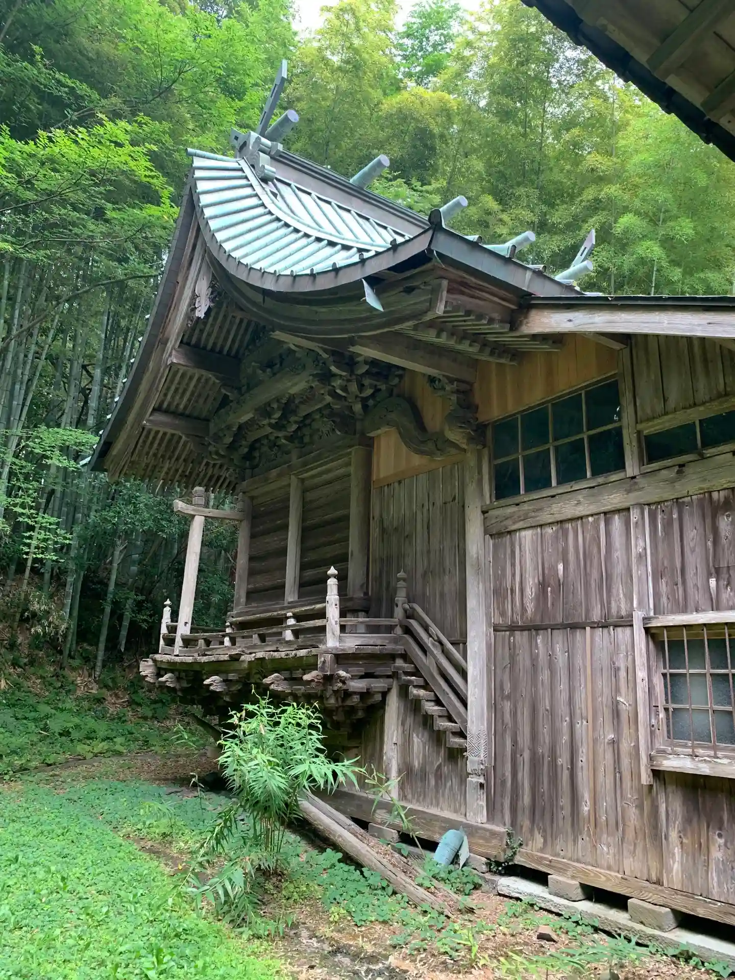 隣にある天満宮はさらに古いように見えます。覆屋には龍と獅子の立体感のある彫刻、そして本殿には簡素な蟇股彫刻が飾られています。