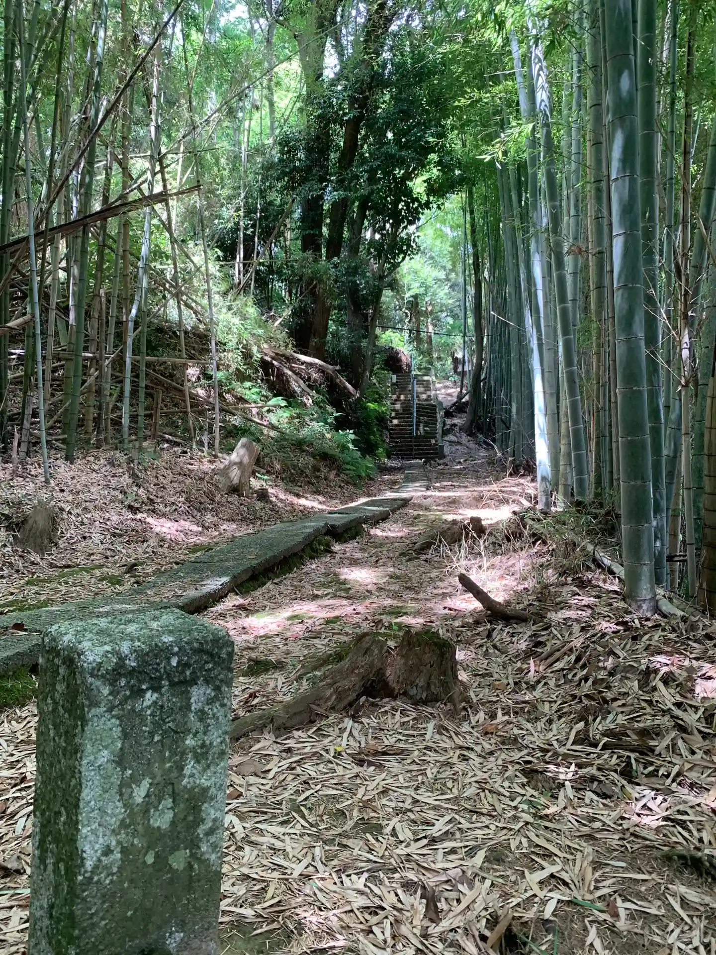 民家の裏から入って竹林の階段を登ります。日蓮宗のお堂です。