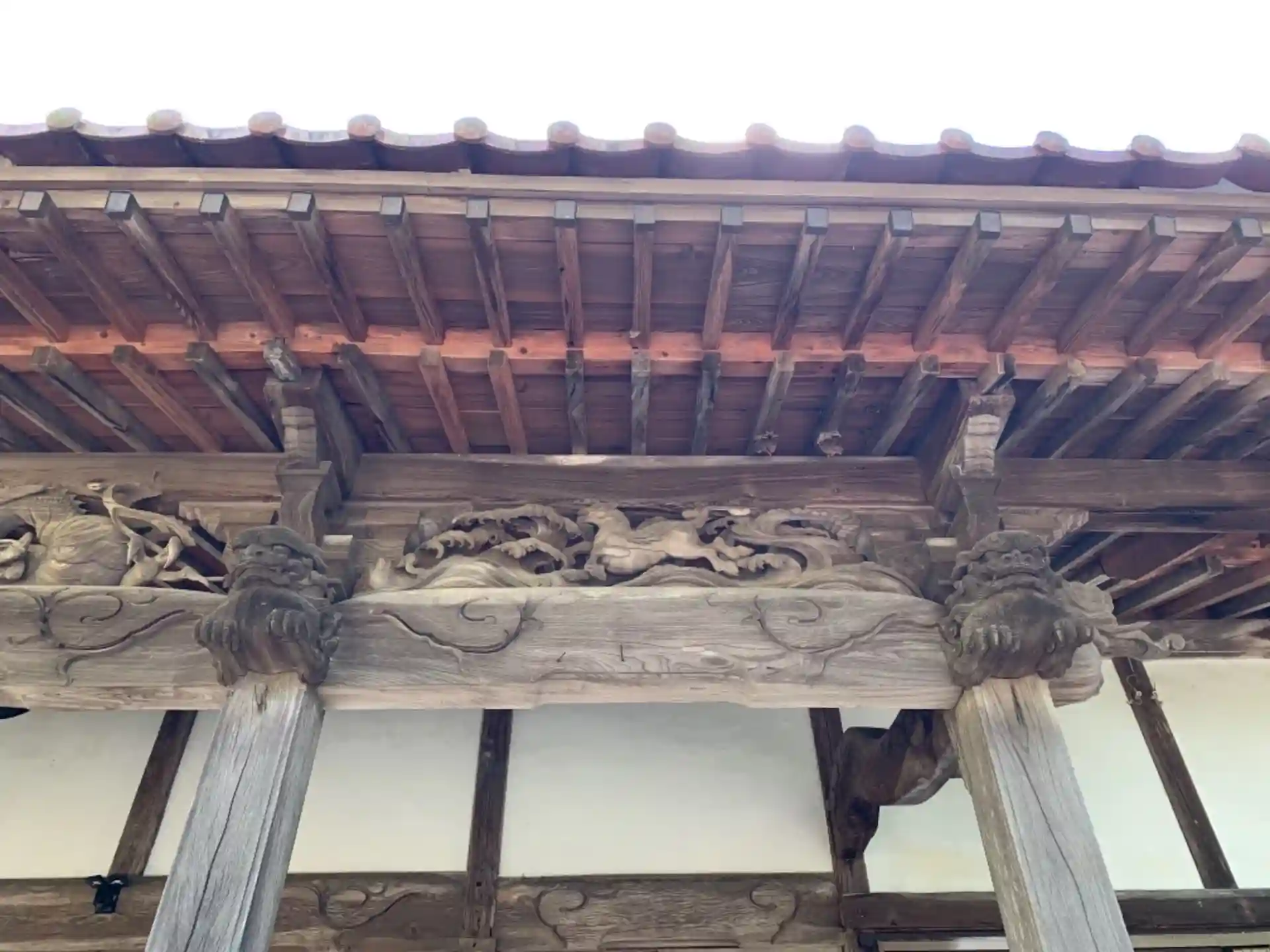 前回参拝した時にいらっしゃった住職の奥さんはおられなかったようなので向拝の彫刻と裏の池だけ見ました。