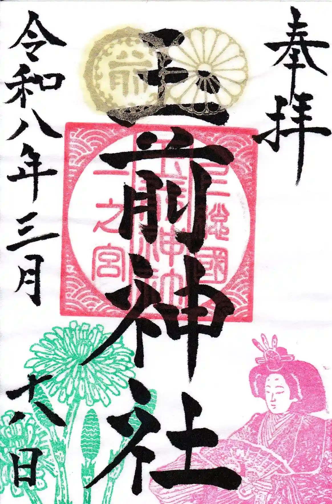 楽しみ方玉前神社の通常の御朱印は1種類ですが、右下の印が月毎に季節の図案に変わります。