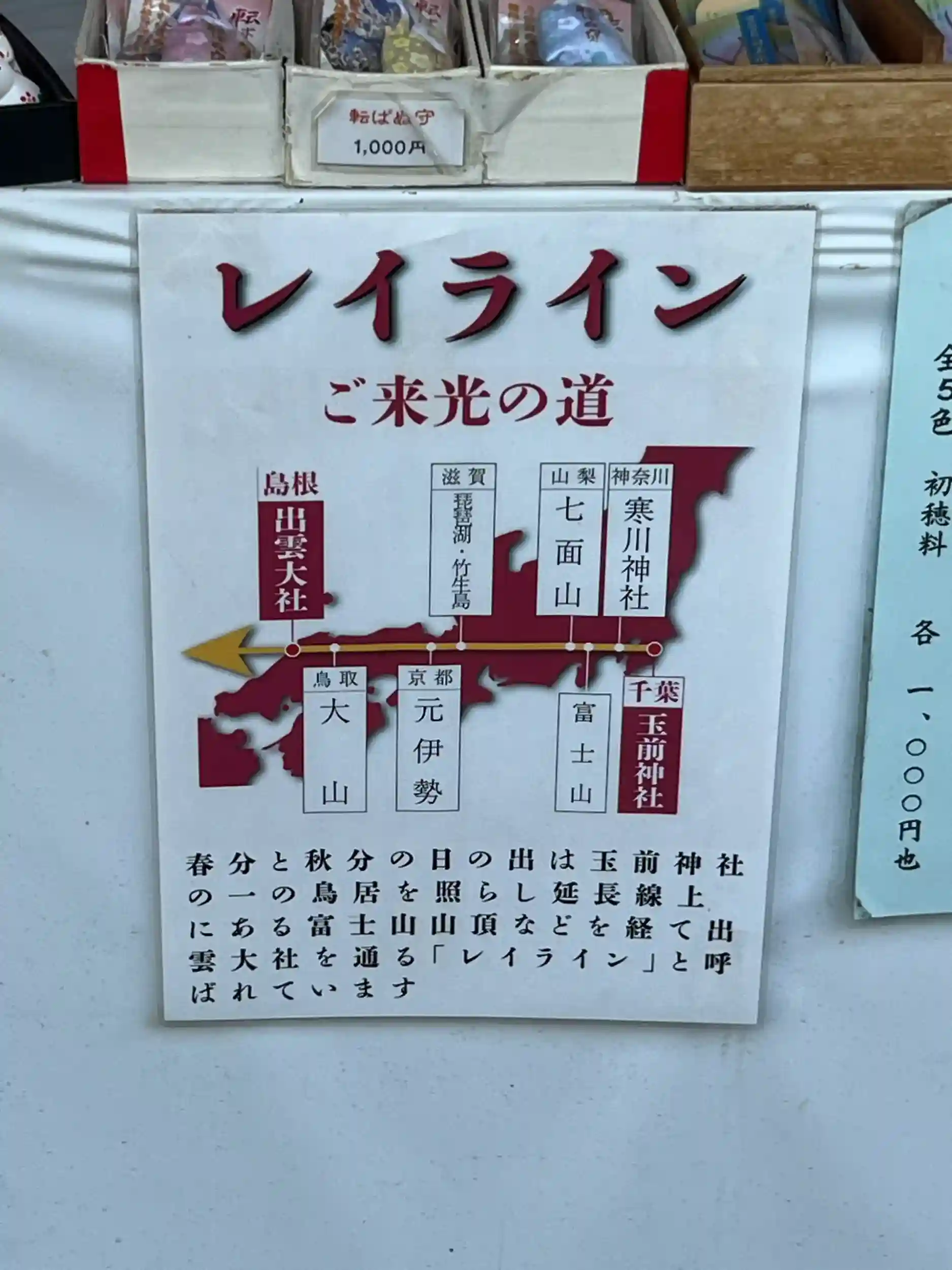 レイライン。富士山と出雲神社を結ぶ始まりの地点にある神社。お守りは波乗りお守りだった