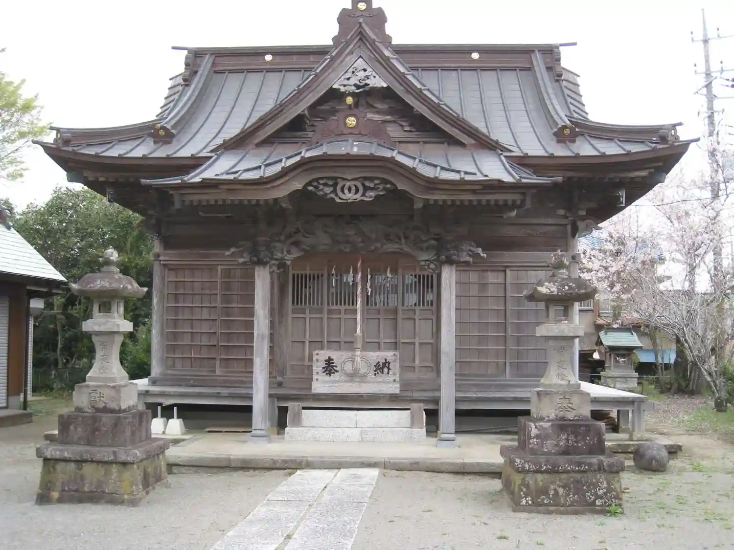 賽銭箱と向拝の二輪の紋は領主脇坂氏の家紋だそうです。