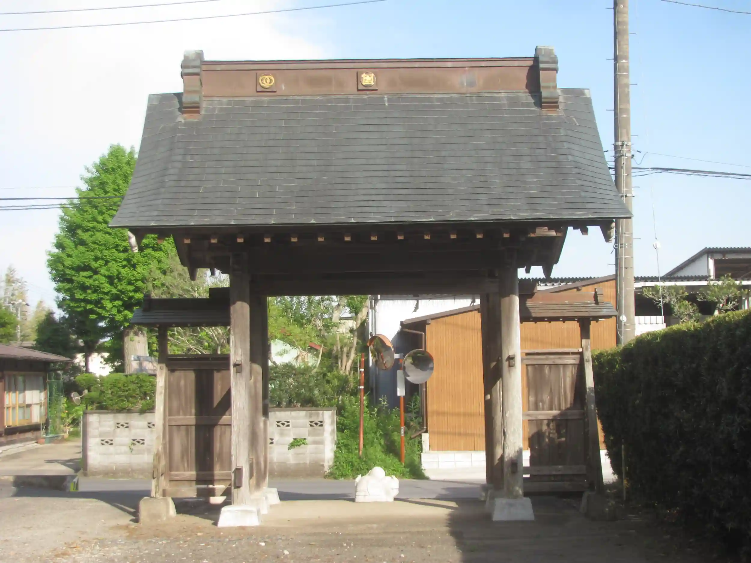 山門主棟には寺紋の「輪違」。