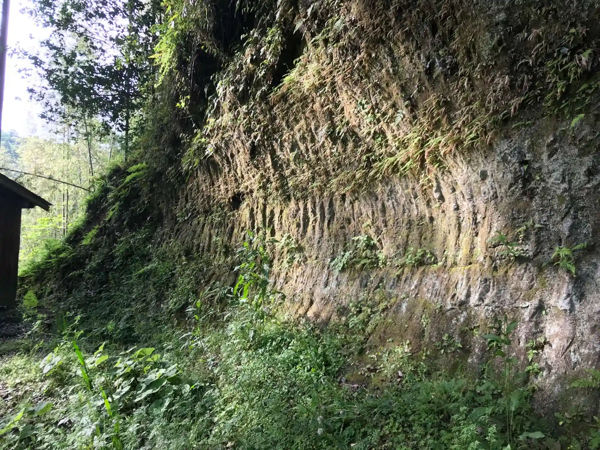 3段の鑿跡が工事の過程を物語っています。