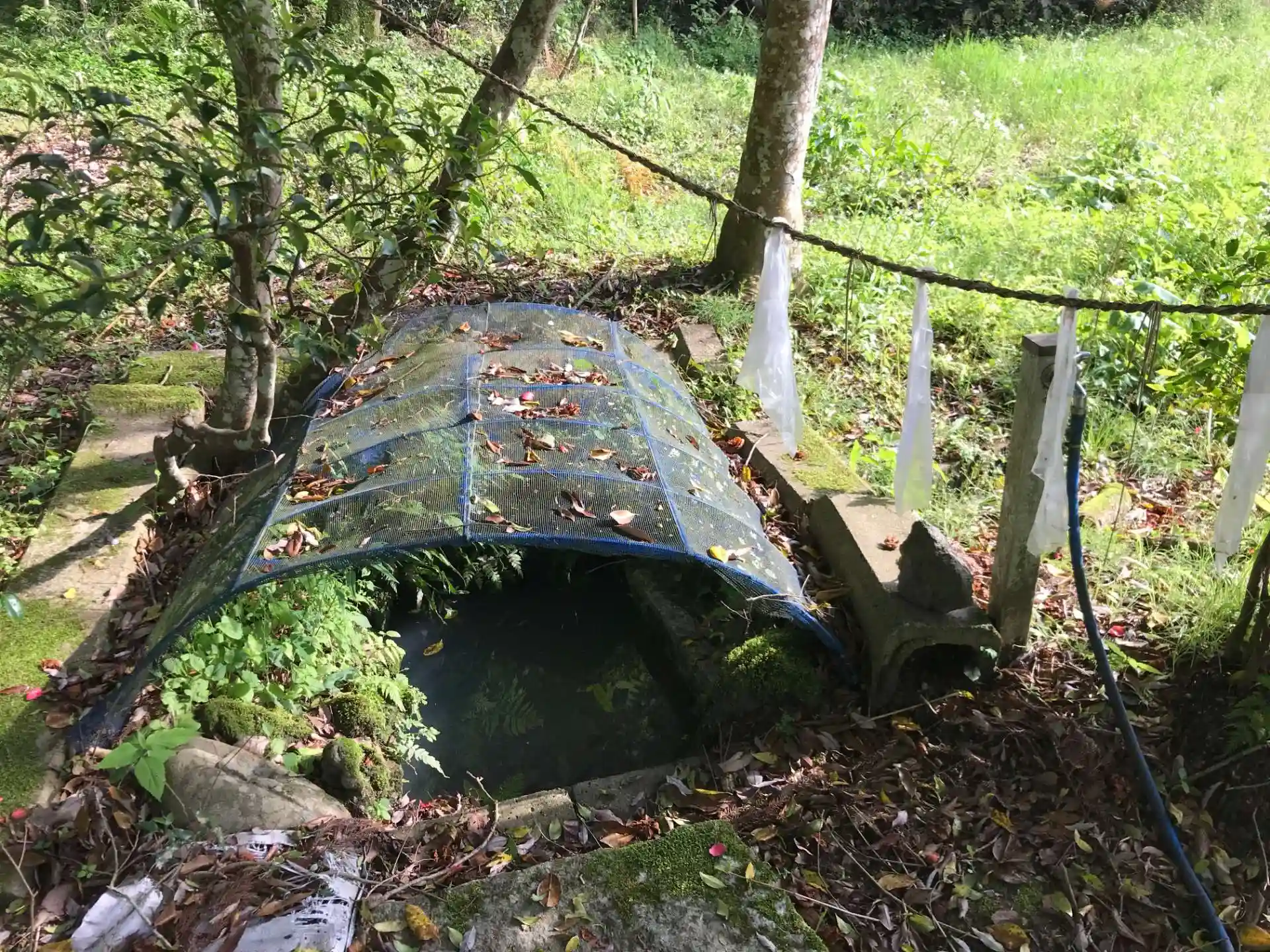 手水鉢の奥にある神水。