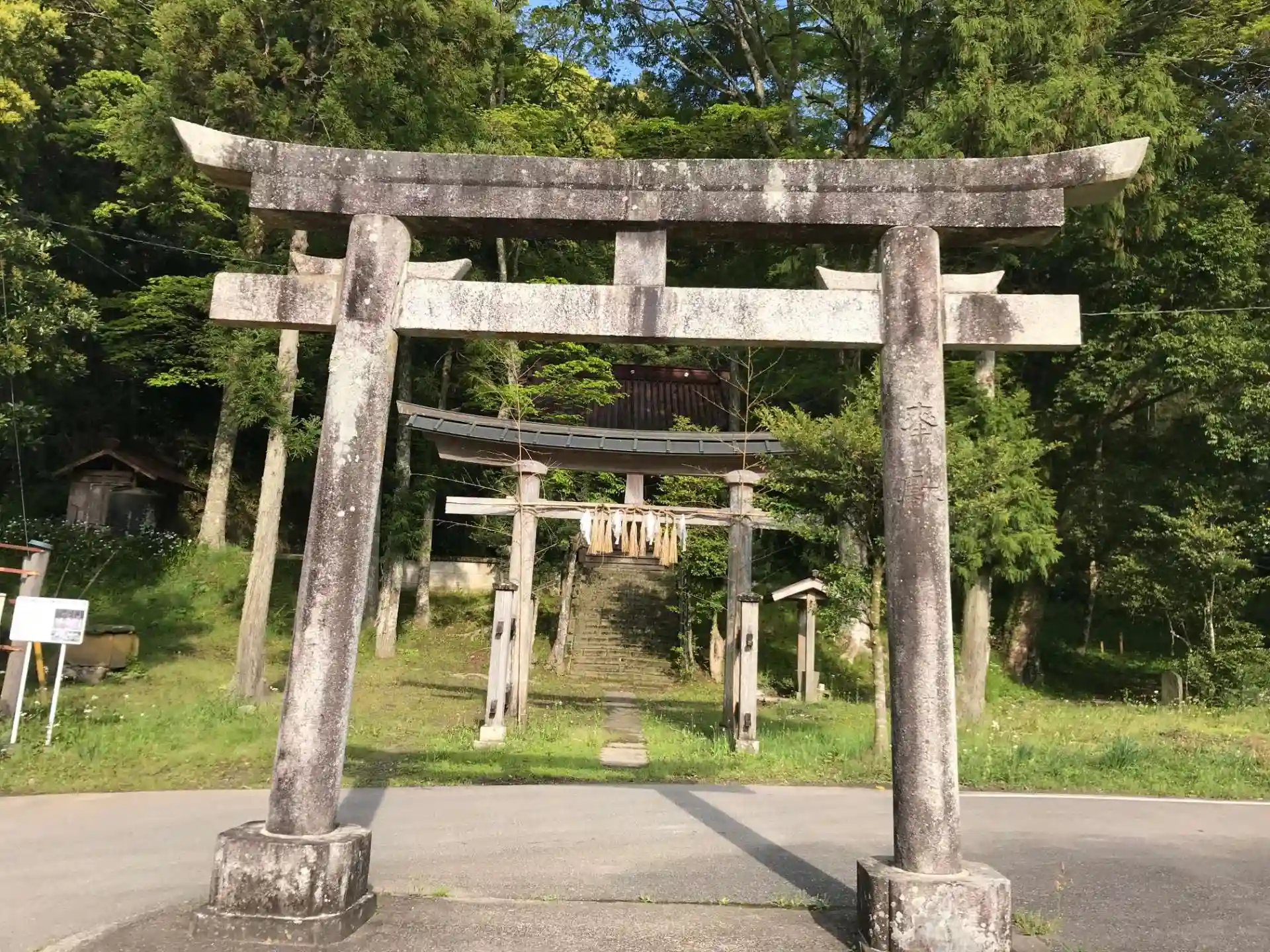 鳥居の柱にあしらわれたリボンみたいな意匠が気になって調べたら楔っていうんですね。石造なので完全に形骸化していますが...。