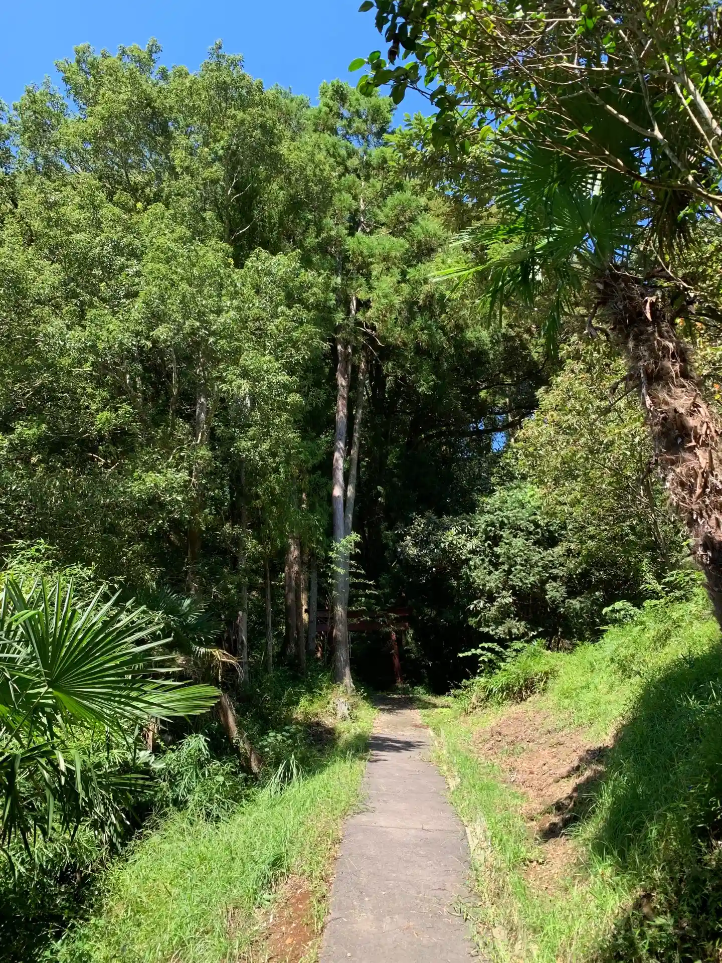 鉄製のちょっと揺れる階段がしつらえてあり、登ると階段と同じ色の小さな社殿があります。社殿向かって左…