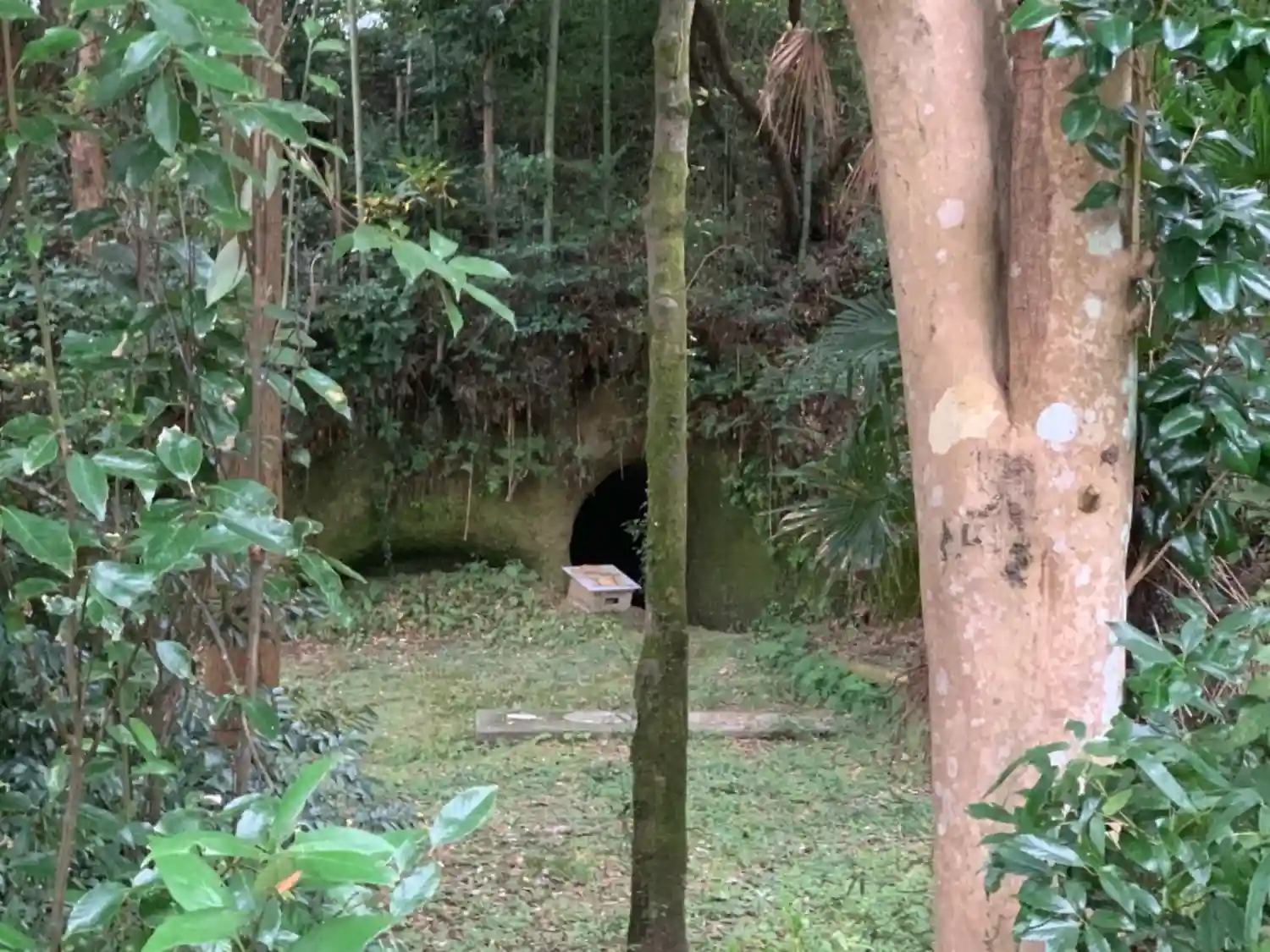 参道脇の空き地の奥に謎の穴が空いてい…