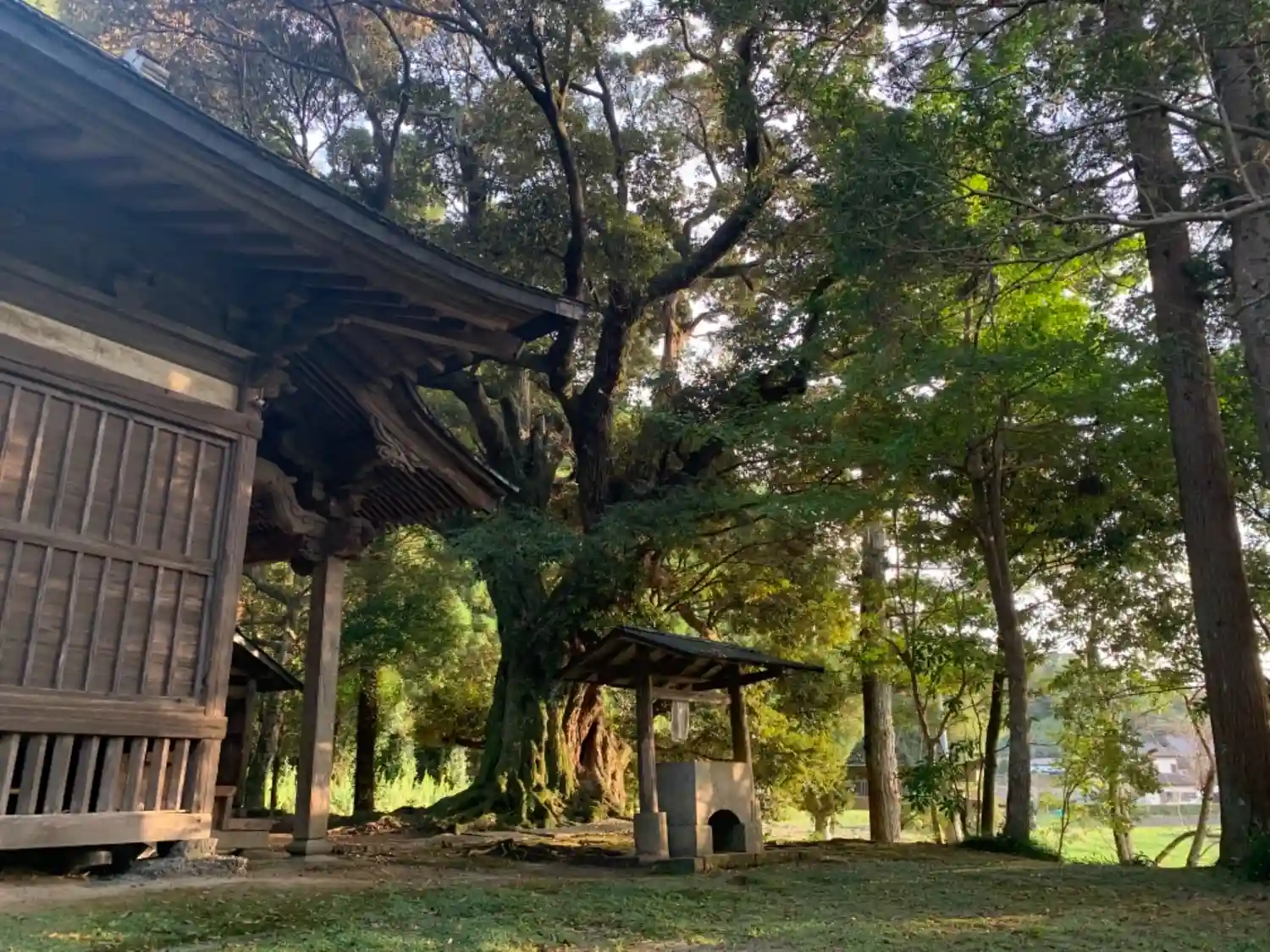 社叢と鳥居が夕日を正面から浴びる姿は素晴らしいです。夕暮れに行くのがおすすめです。