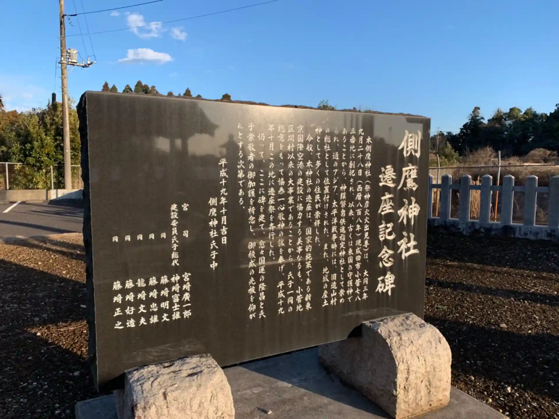 京成東成田線沿線にある神社。神社自体は1200年近い歴史があると石碑には書かれています。空港開設に伴いこの地に移転しました。
