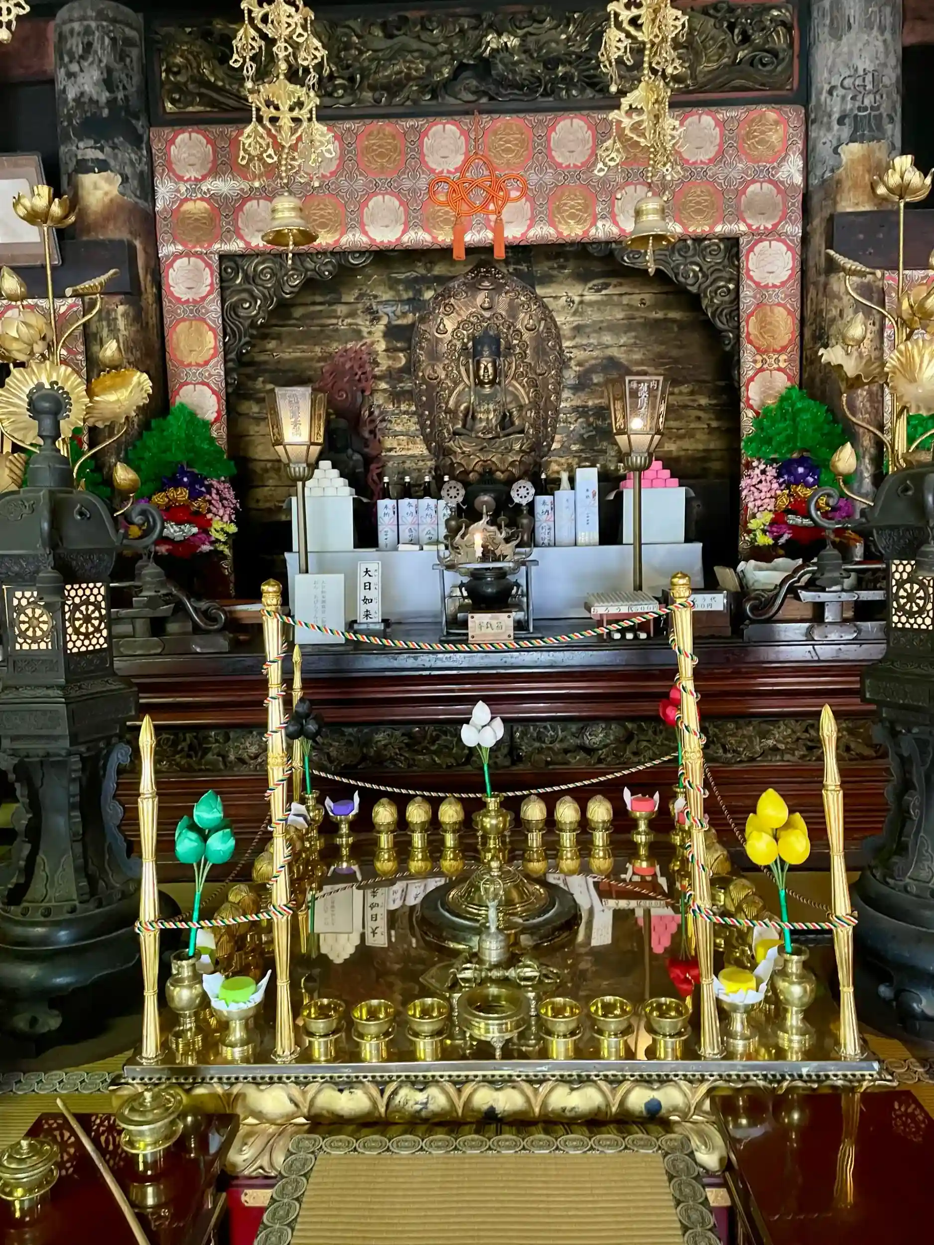 堂内には大日如来、愛染明王、不動明王が奉安されている。