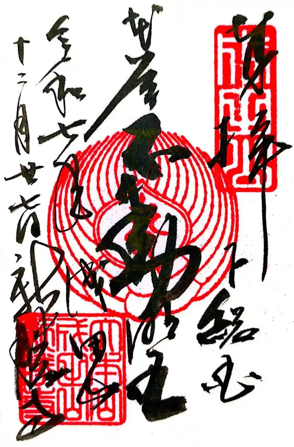 | 御朱印 | あり 右下に下総国、真ん中に不動明王の文字が書かれています。不動明王2種類と荼吉尼天、釋迦如来、大日如来、薬師如来、合わせて6種類のご朱印が。