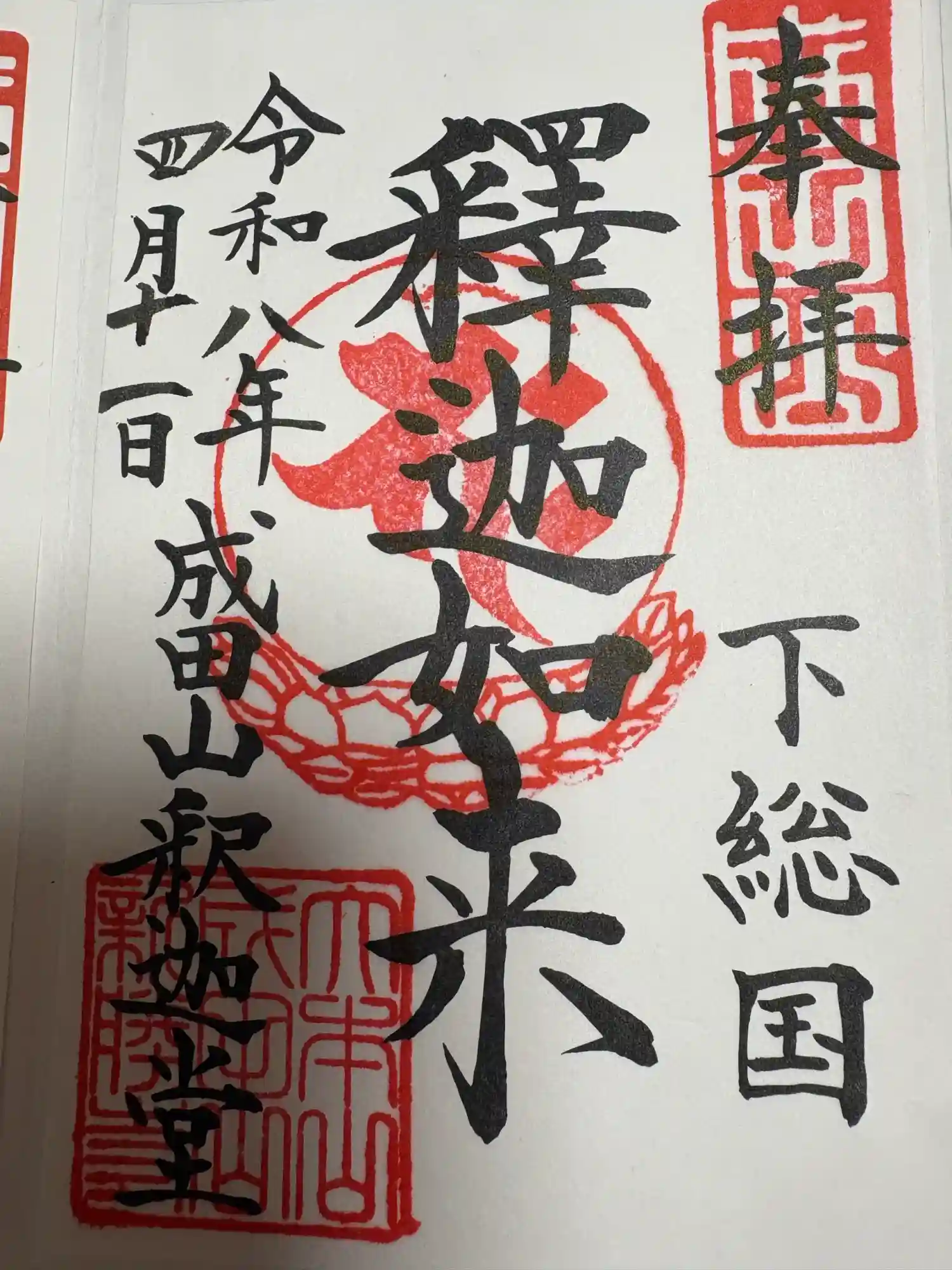 右下に下総国(しもうさのくに)の文字、左には成田山新勝寺の文字と