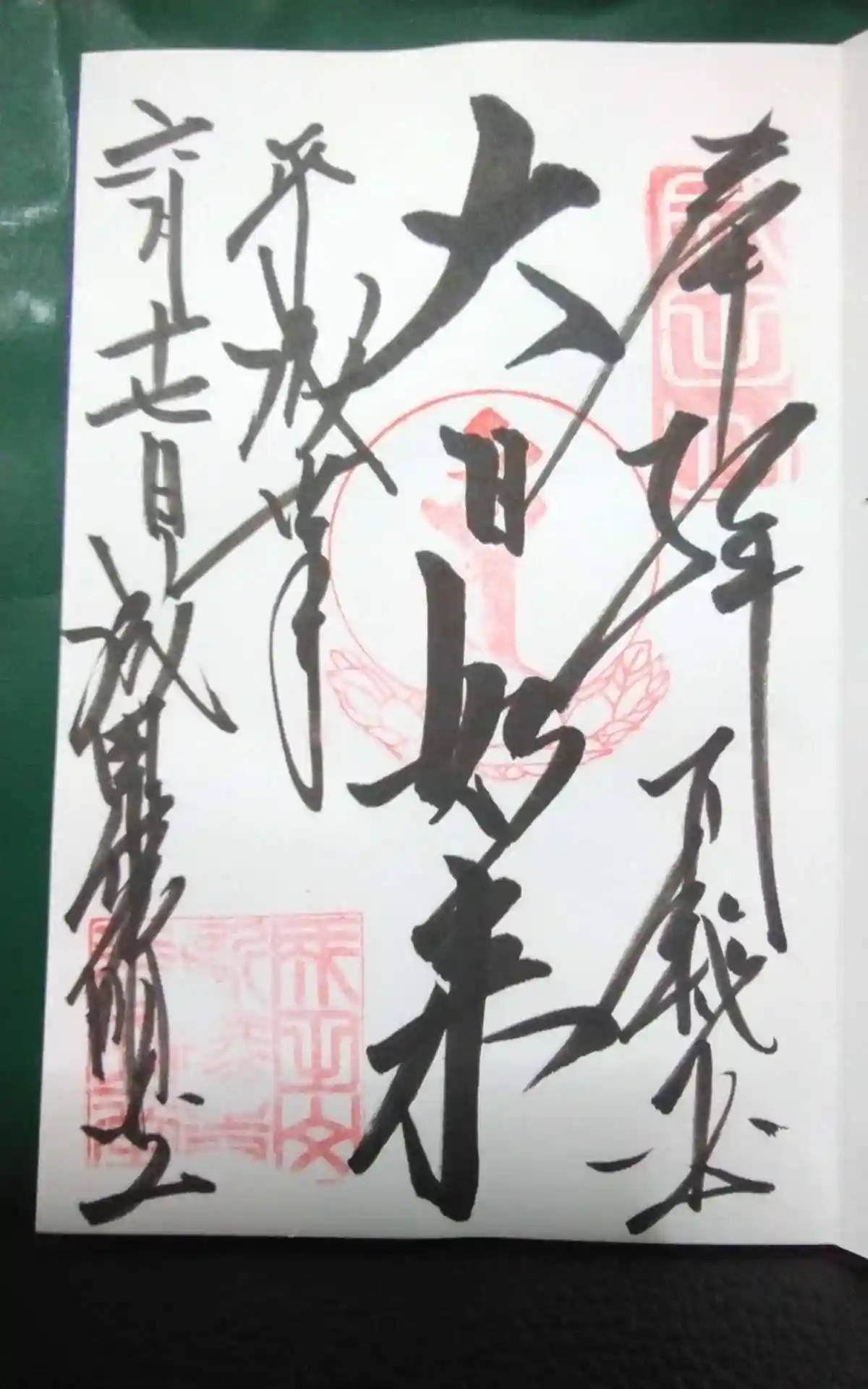 過去に伺って頂いた成田山光明堂様の直書きの御朱印になります。
