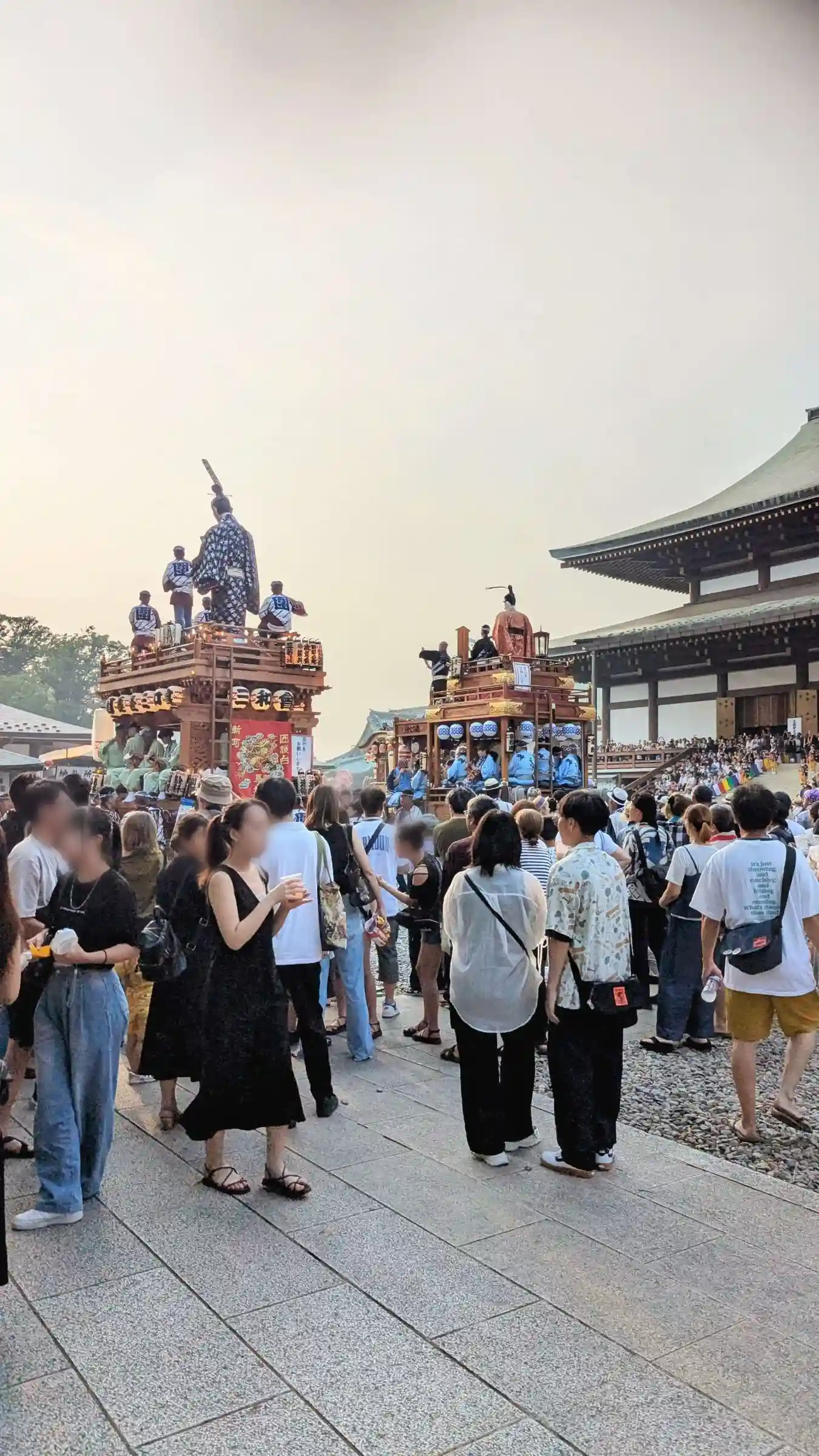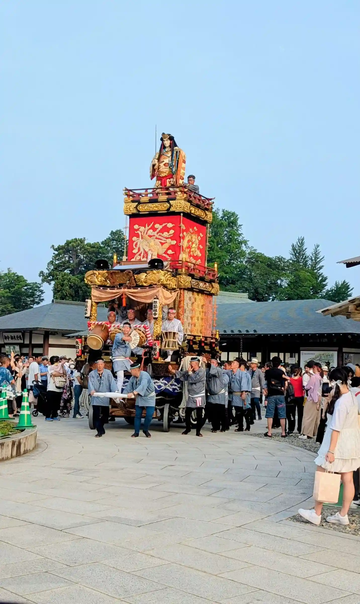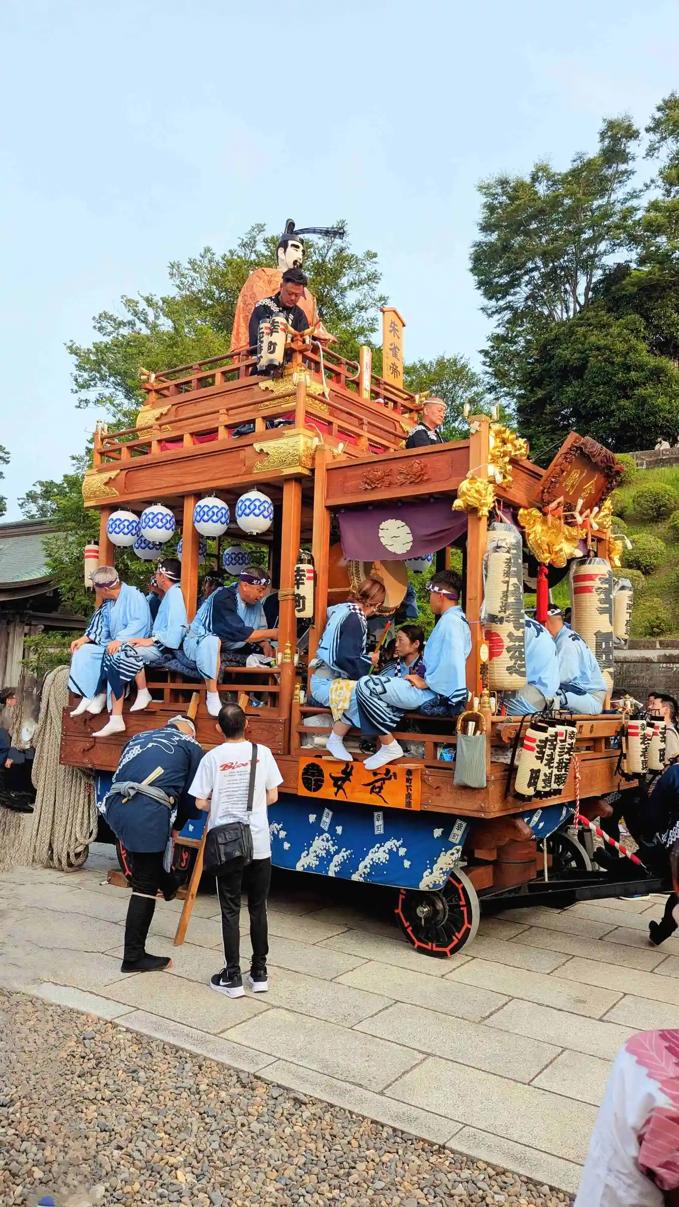前の山車•屋台が進まないと後ろも当然進めない💦そして山車•屋台の前後には引っ張る縄が200mくらいあるので反対側になかなか渡れない😱