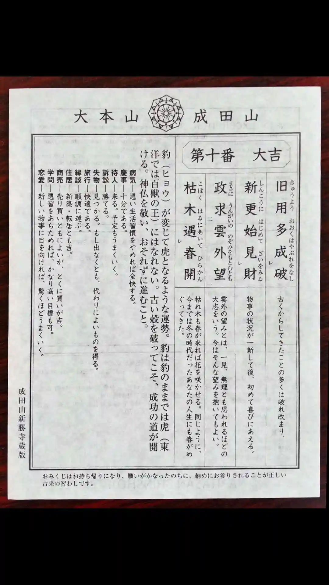 お御籤で今年の運勢を占ってみました。