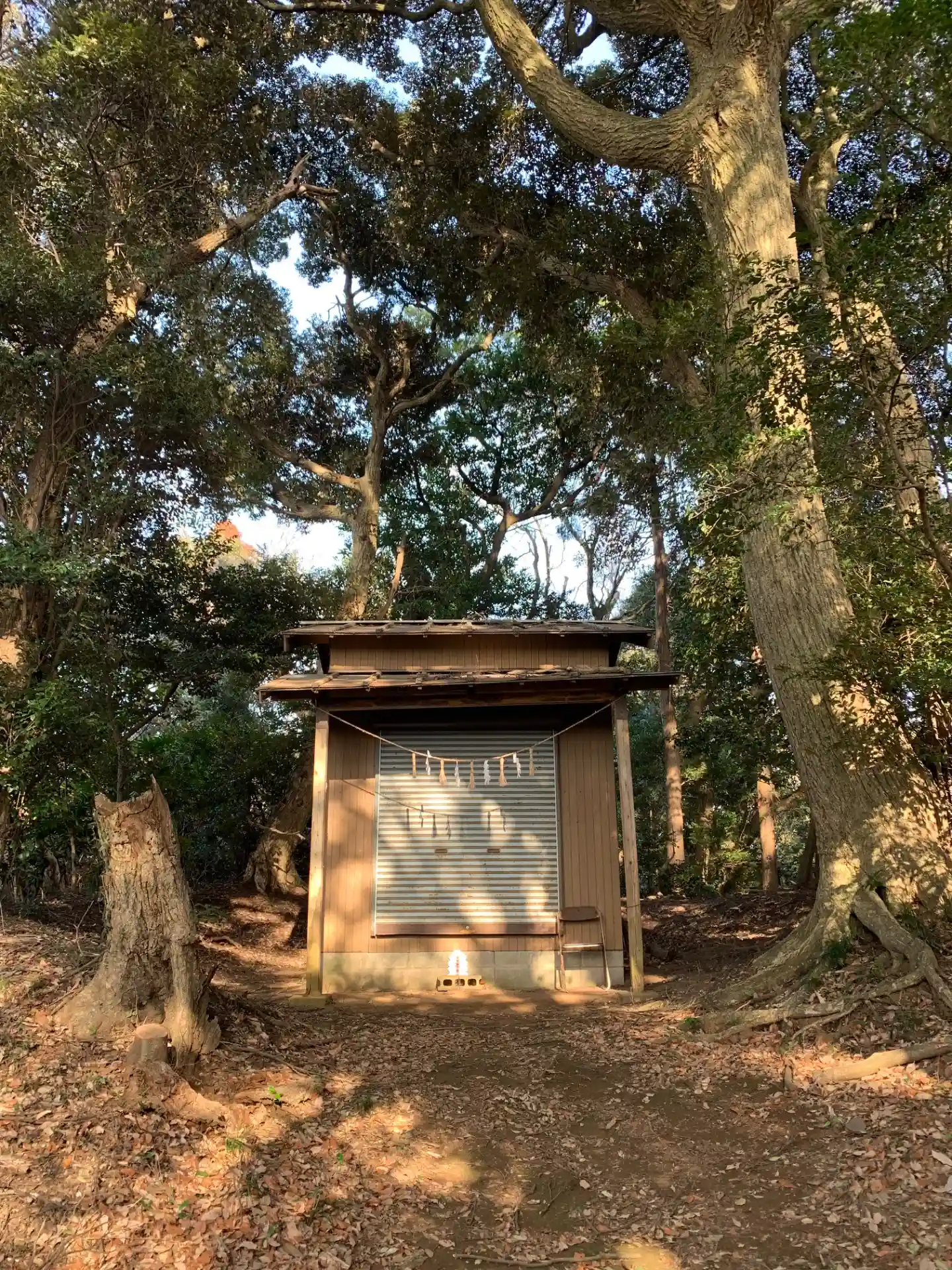 一面の田園地帯を臨む神社。夏はいい景色になることでしょう。石段は長く、頂上に簡素なお社が建っています。近くには地蔵と道標もありました。