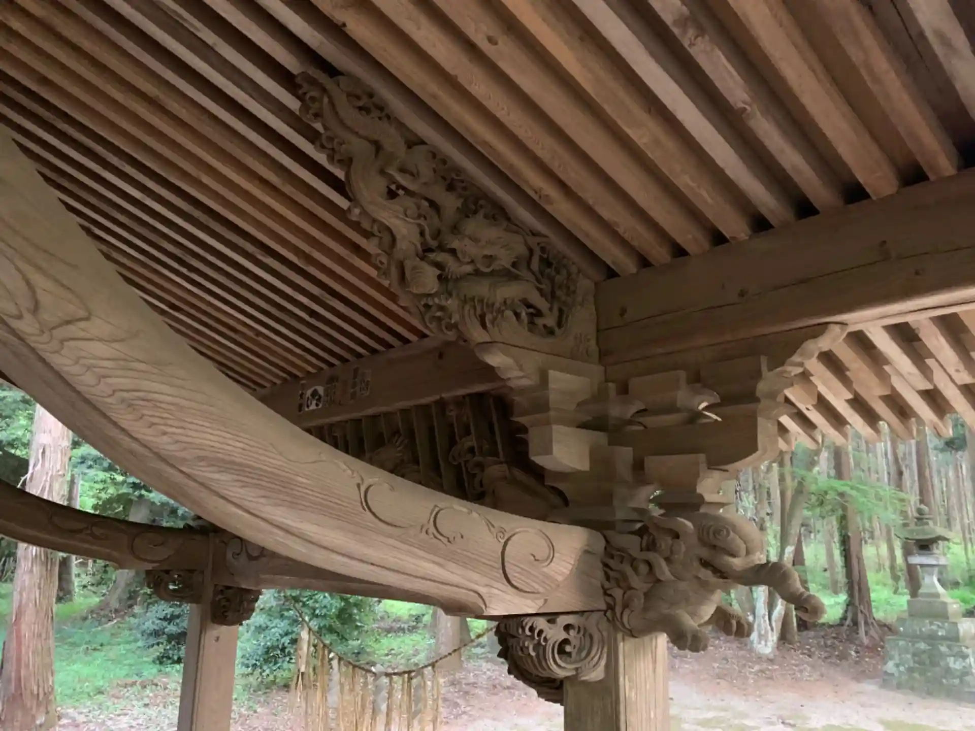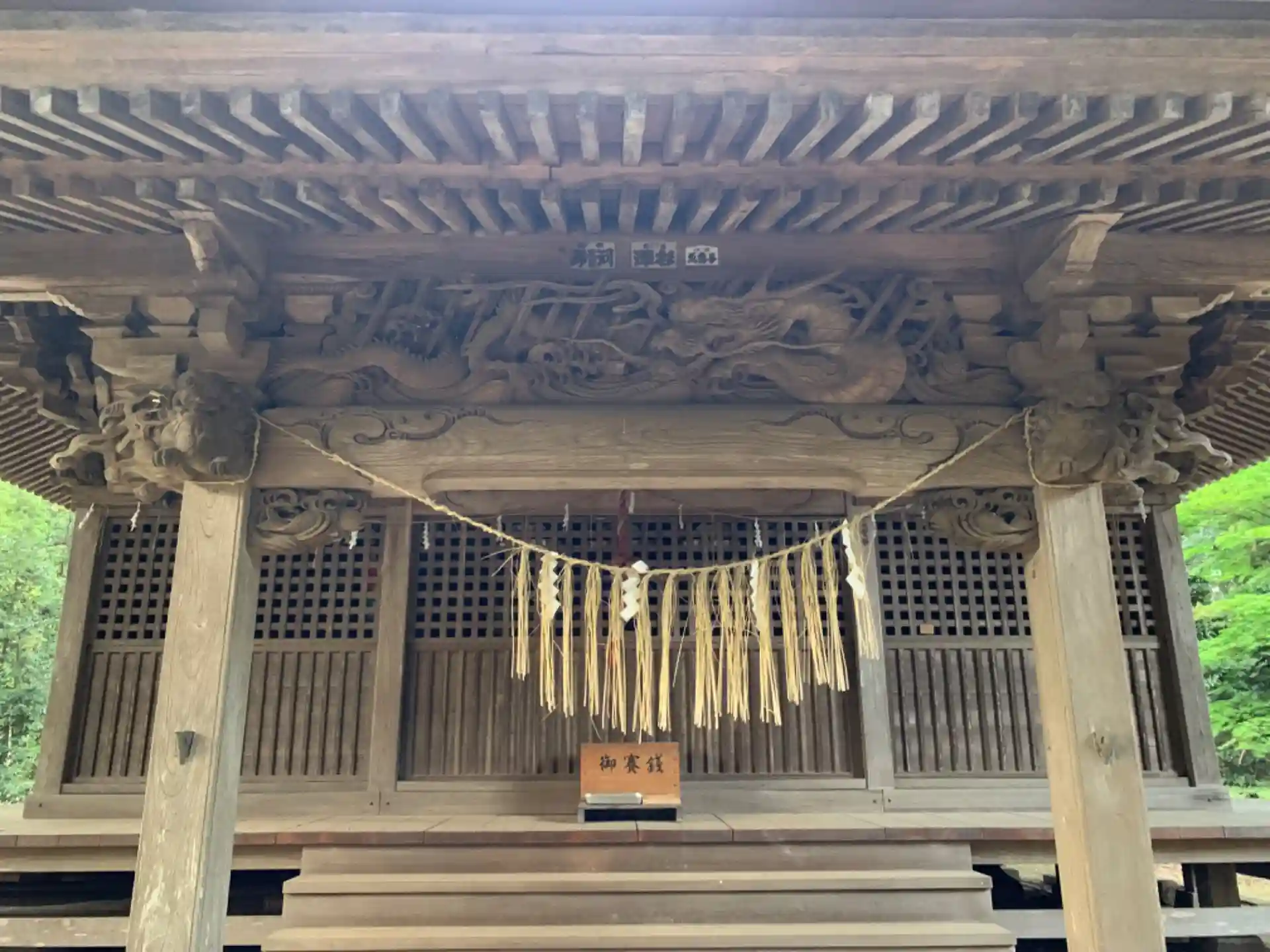 拝殿や本殿は彫刻が飾られています。中備には雨龍で、斜めの線は雨を表現しています。手挟みの龍や手肘木の鯉に技量を感じさせます。本殿は1785年に建てられたとのことで、改修はされているでしょうがこちらにも彫刻が見られました。