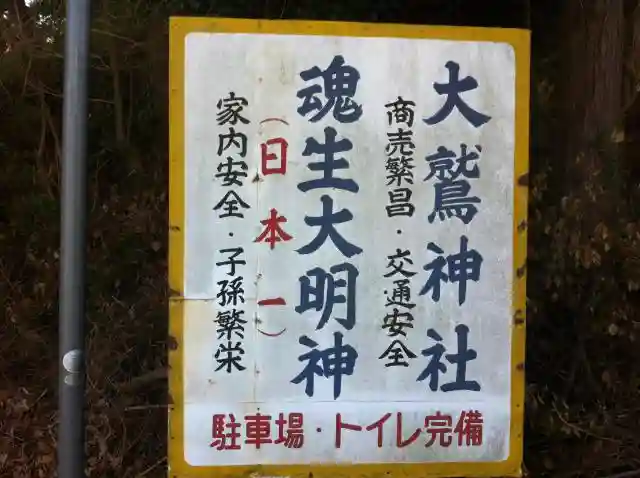大鷲と名がついてるのでお酉様なんですが、魂生大明神の方が参拝されてるのではないでしょうか。いろんな意味で立派ですね^^
