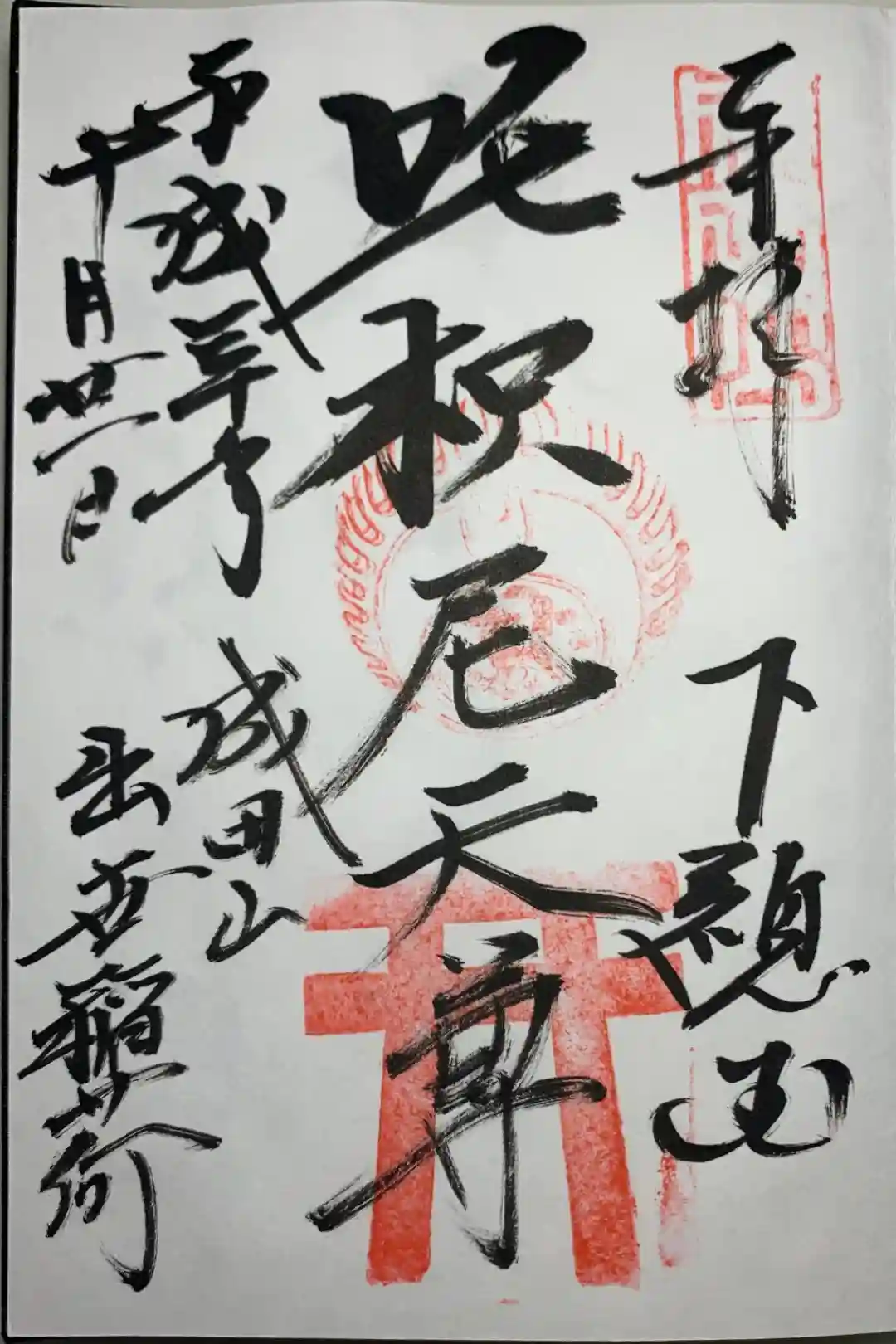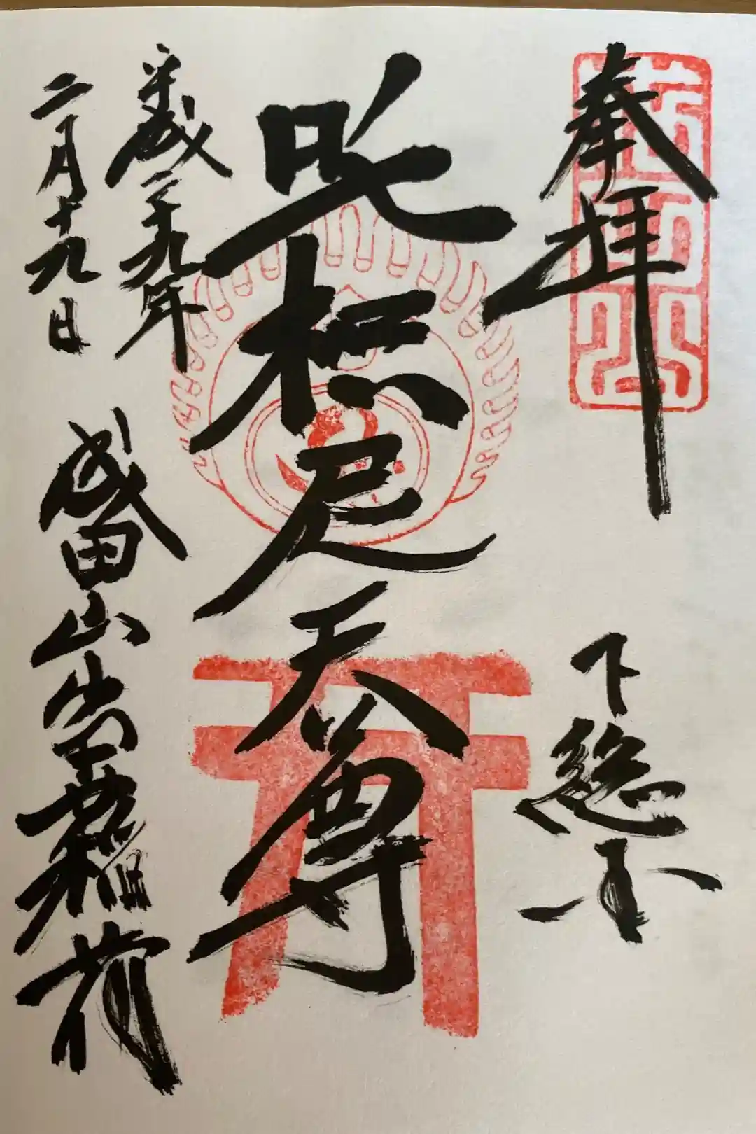 平成29年、6年前にいただいた吒枳尼天の御朱印。普段は直書きしていただけます。