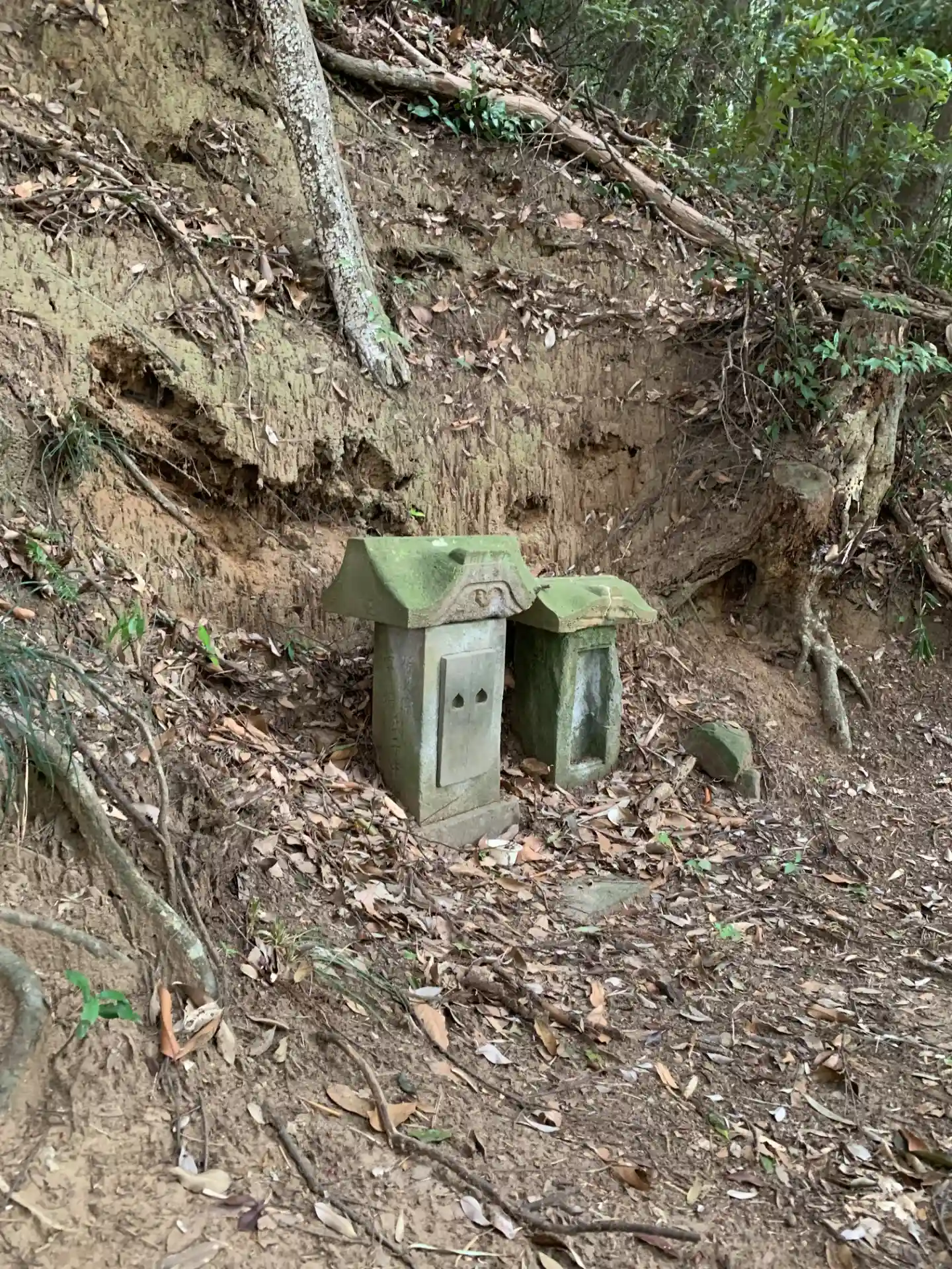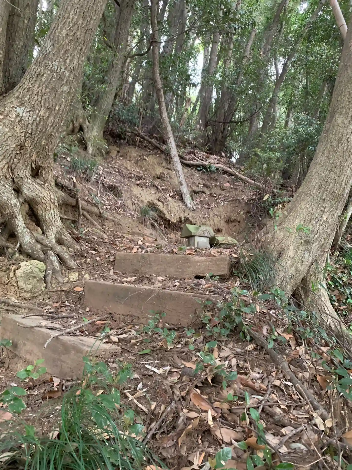 雨の日は無理そうな土の激坂を登ったところに祠があります。