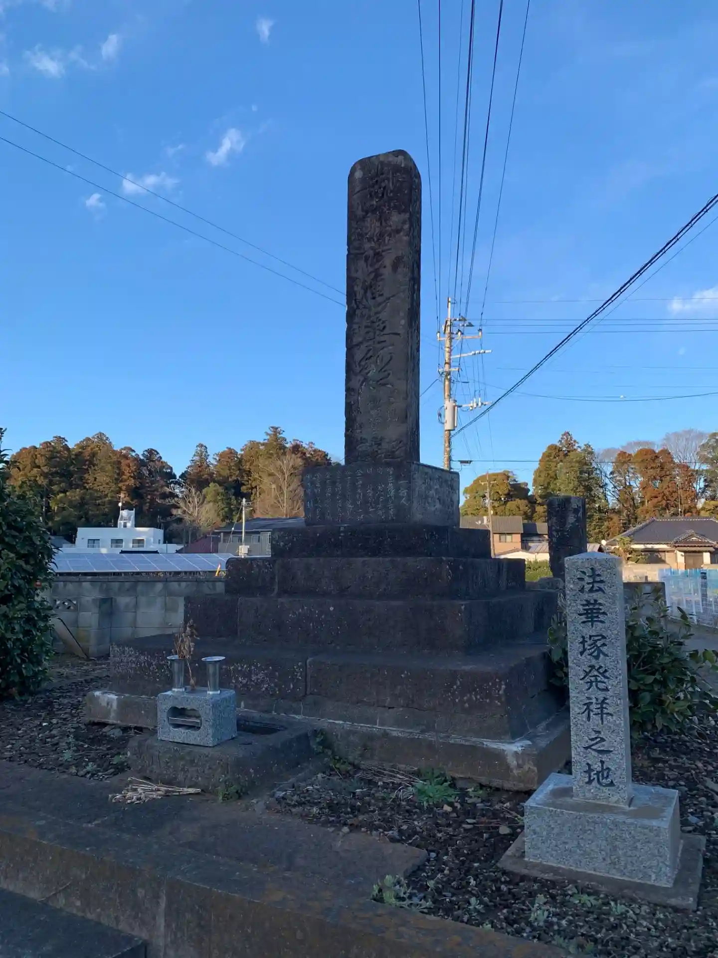 広々としたお寺です。近くには法華塚がありますが、これは多古から一里ごとに置かれた塚のこと。三里塚が有名です。四は縁起が悪いのでここだけ法華塚と呼ぶそう。
