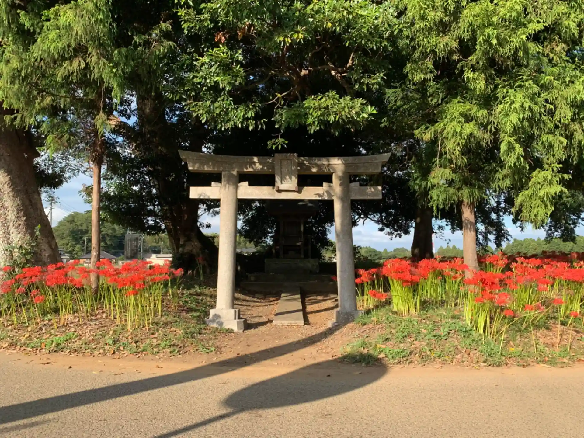 畑の中にある小社。小さな境内に溢れんばかりの彼岸花が咲き乱れていました。地元の方が楽しむためにここまで増やしてきたものと思われます。