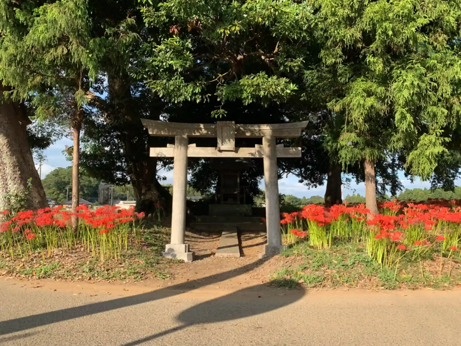 畑の中にある小社。小さな境内に溢れんばかりの彼岸花が咲き乱れていました。地元の方が楽しむためにここ…