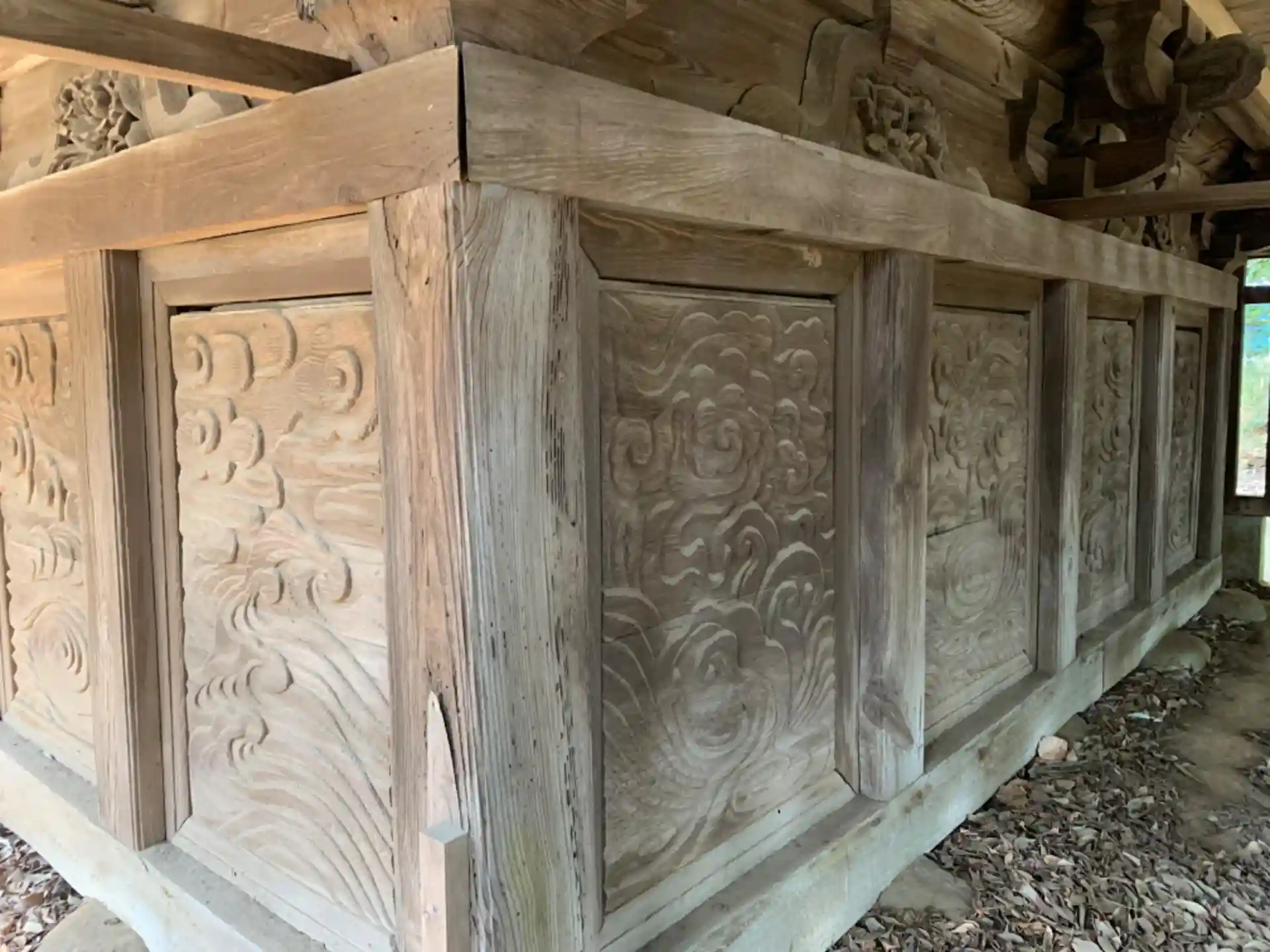 境内にいくつもある祠にはすべて手作りの看板が立っていました。