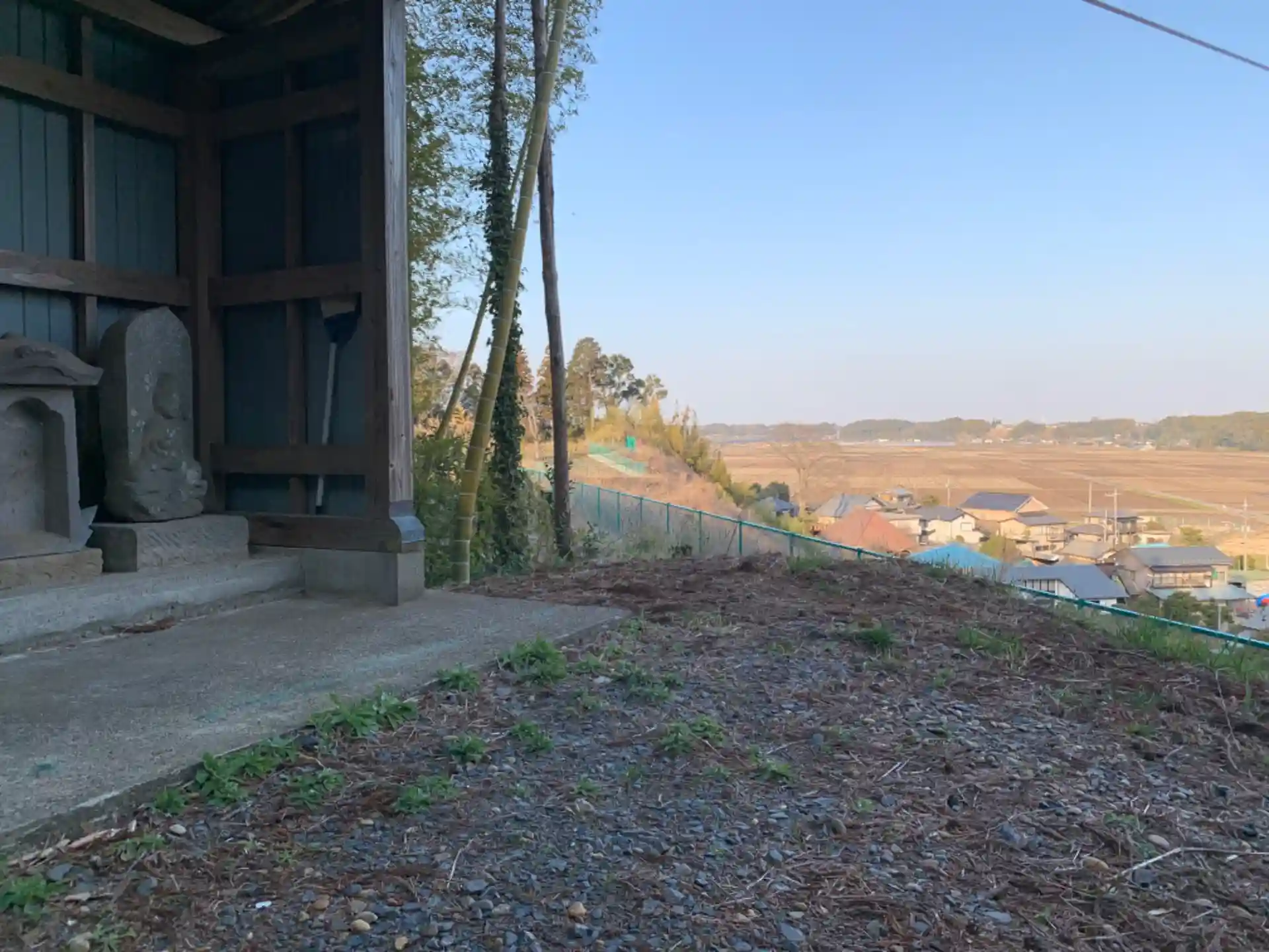 勝福寺の墓域から石段を登ると、石祠がかる眺めのいい高台に出ます。祠には如来荒神、香取神社などと刻んでありました。