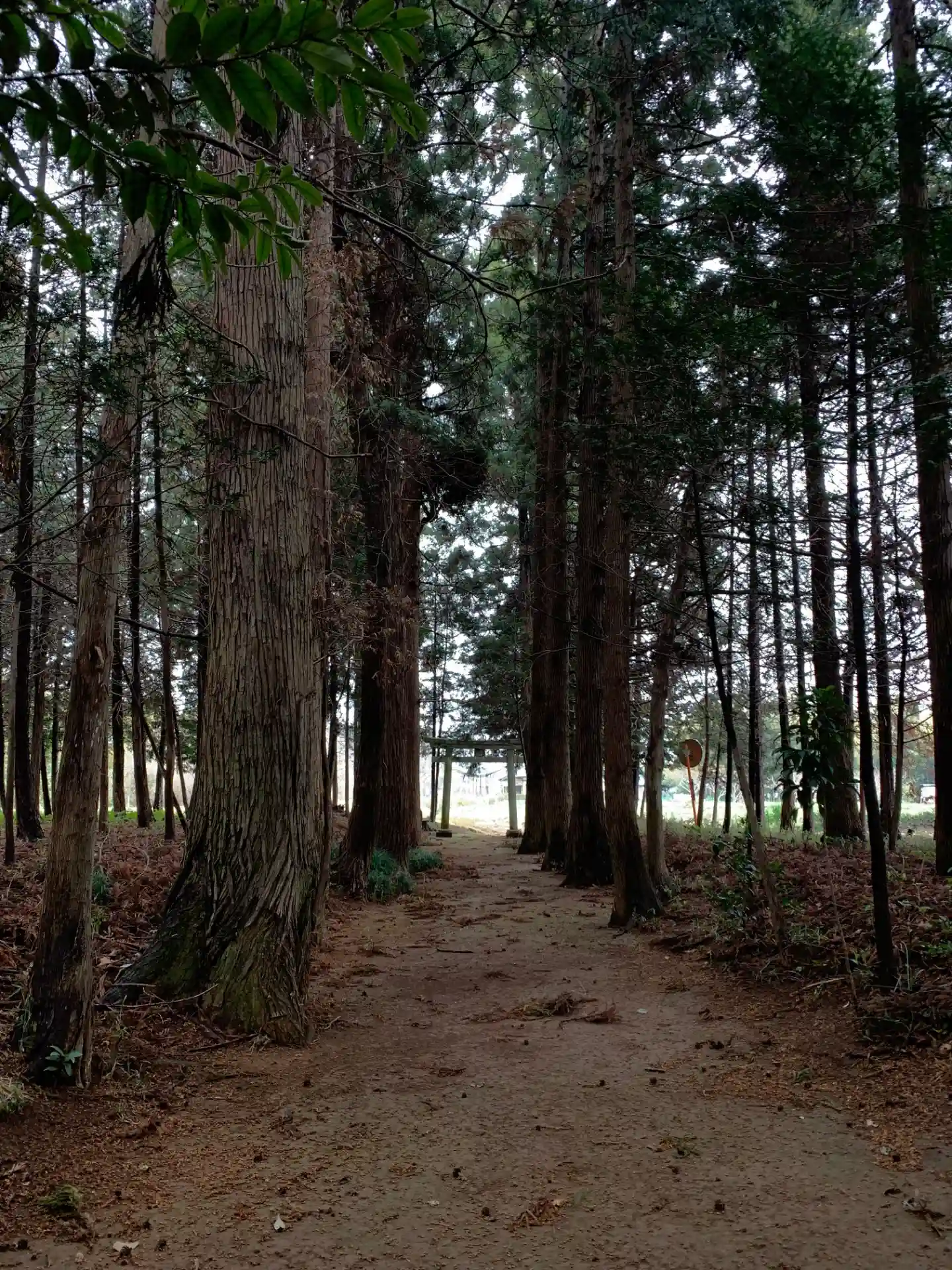 直売所のすぐ裏の小さな杉林の中にあります。神社のすぐそばには大木があり、根元に二十三夜道標が佇んでいました。