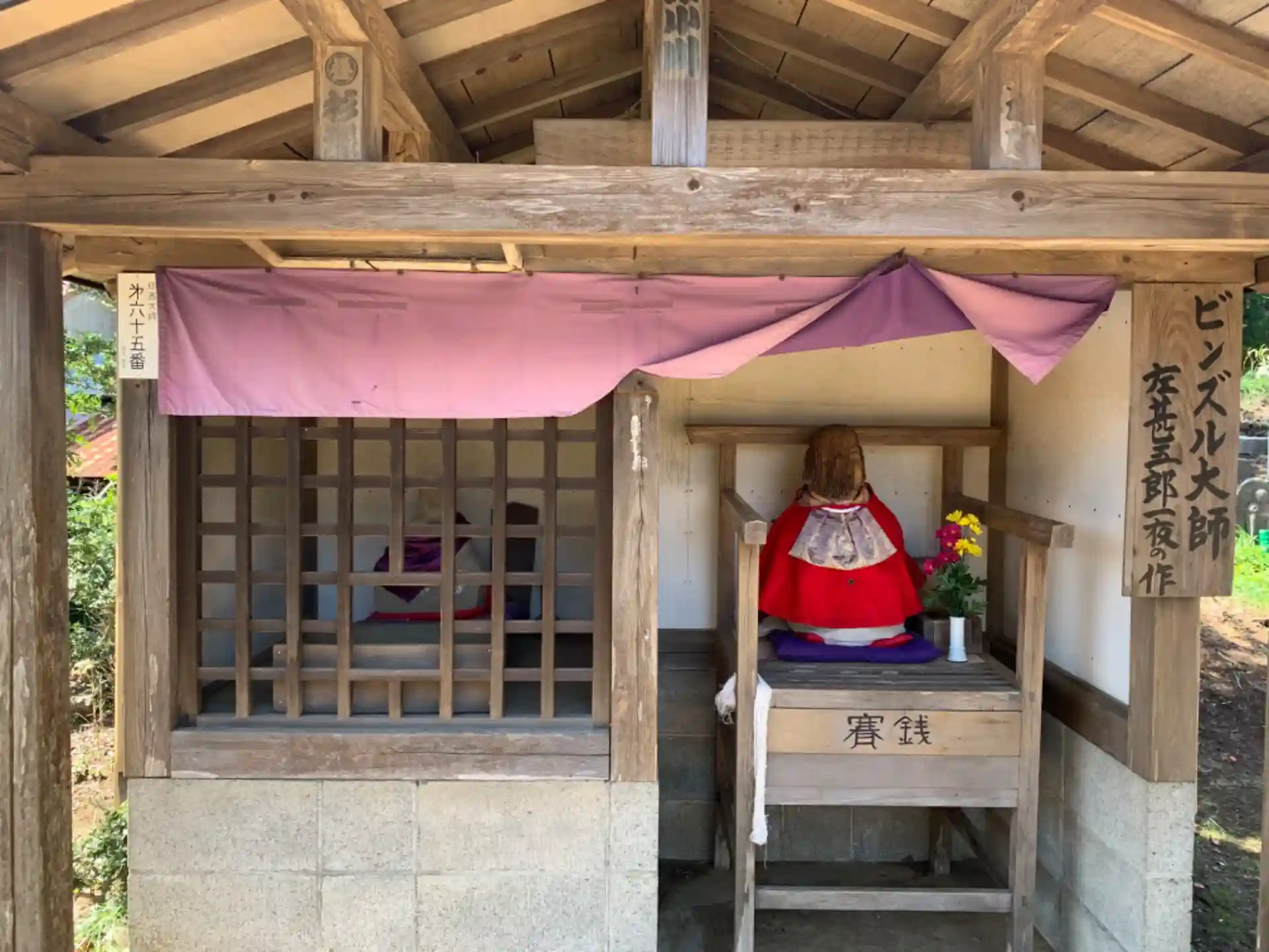 境内には熊野神社のほか、左甚五郎が一夜で作ったとされるビンズル大師があります。ご利益のために撫でらてきたようでかなり摩耗していました。
