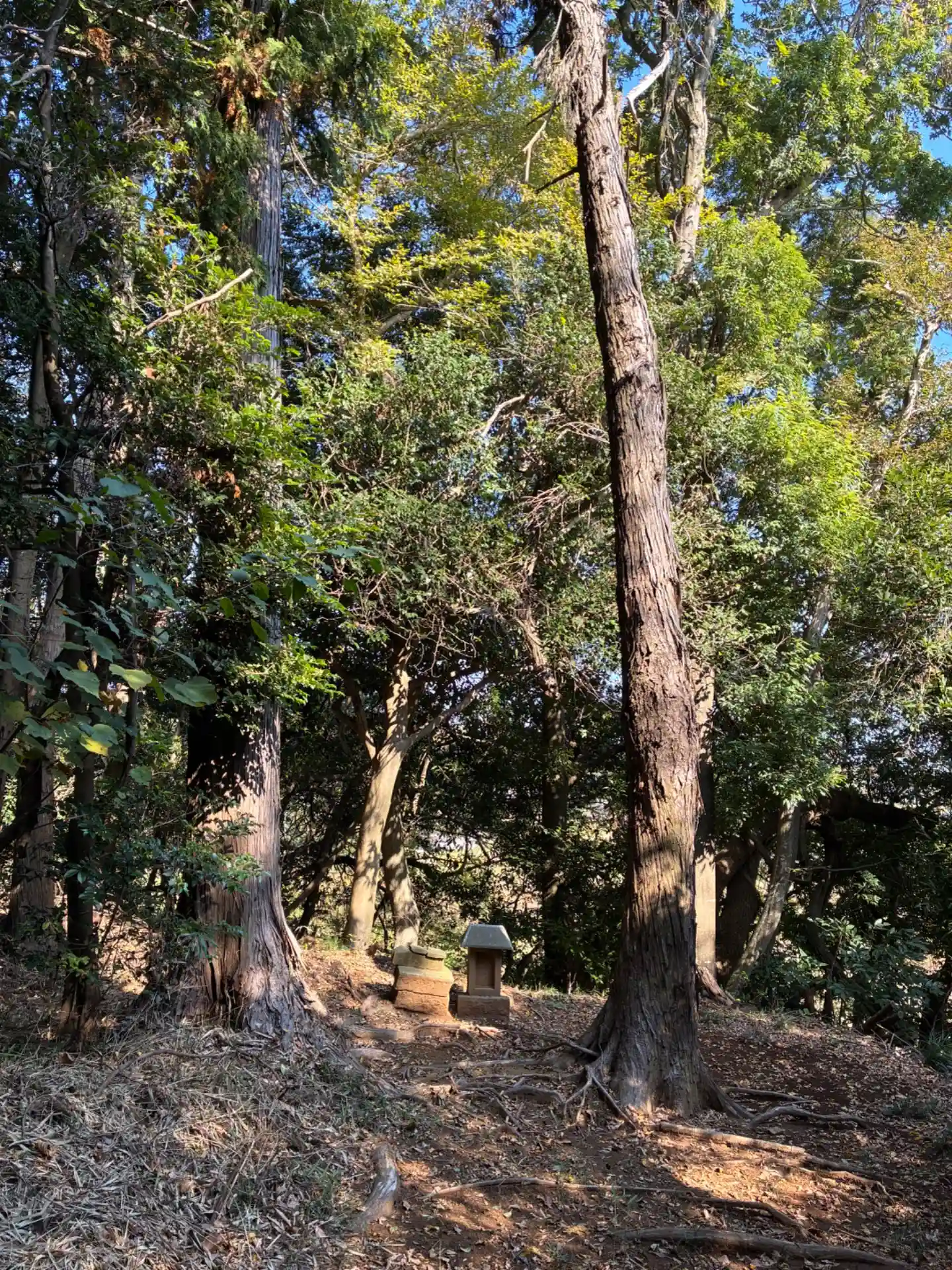 上高野村の北端、台地のへりにある神社。中途半端に造成された道路があるため道中かなり開けています。境内は杉林に囲まれています。狛犬とは別にライオン像がありました。