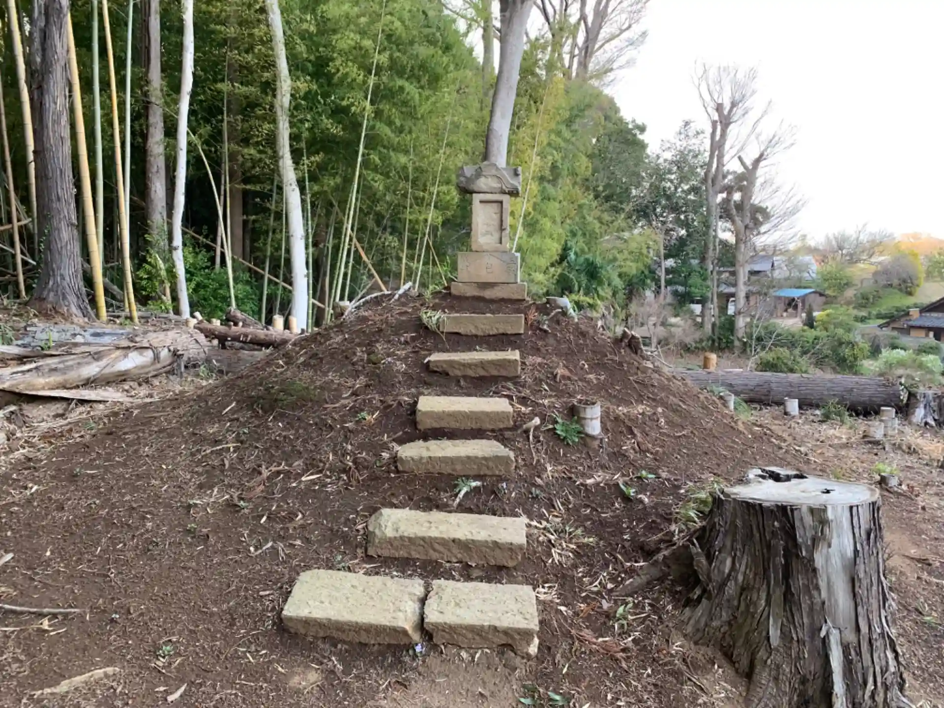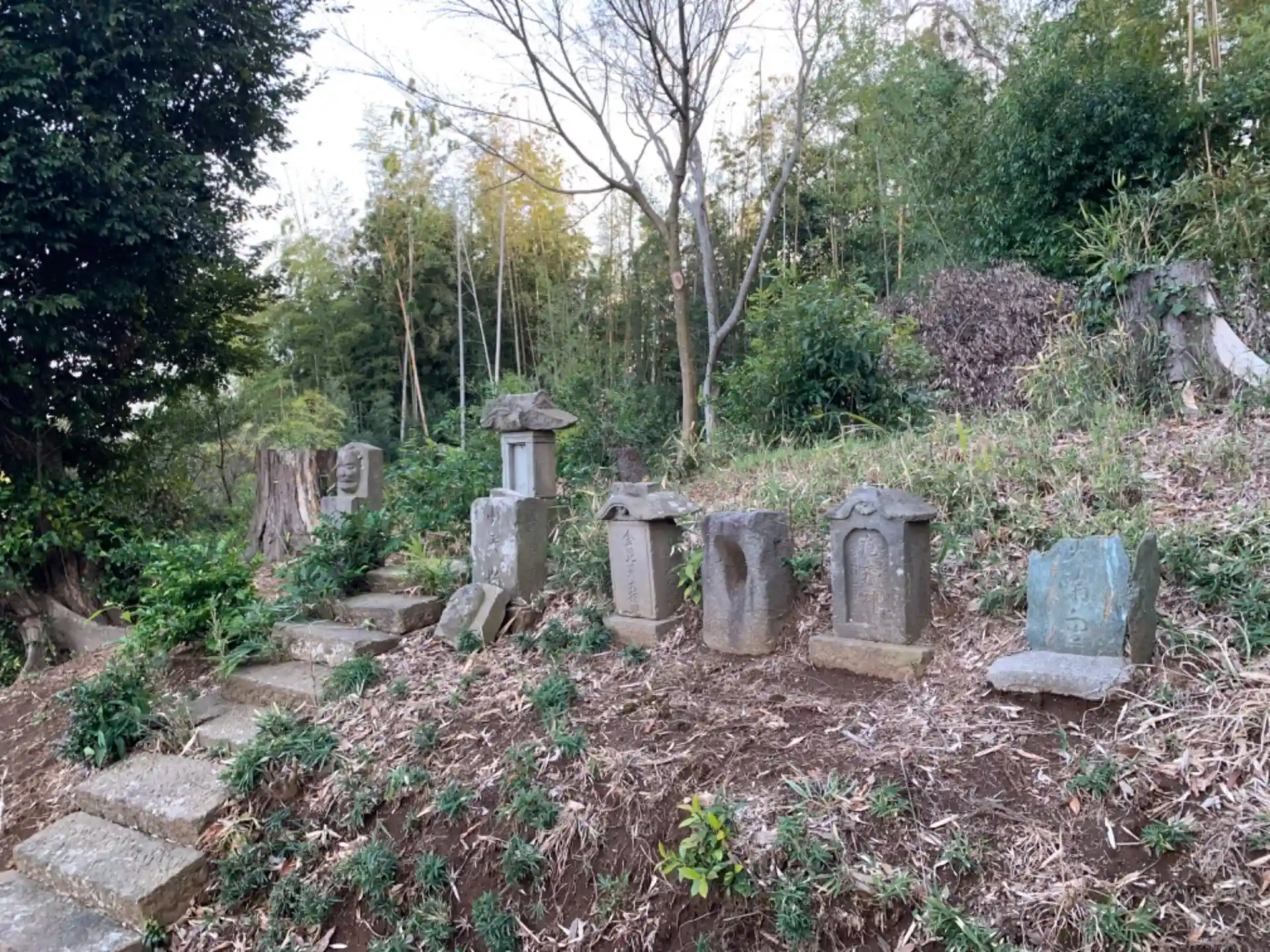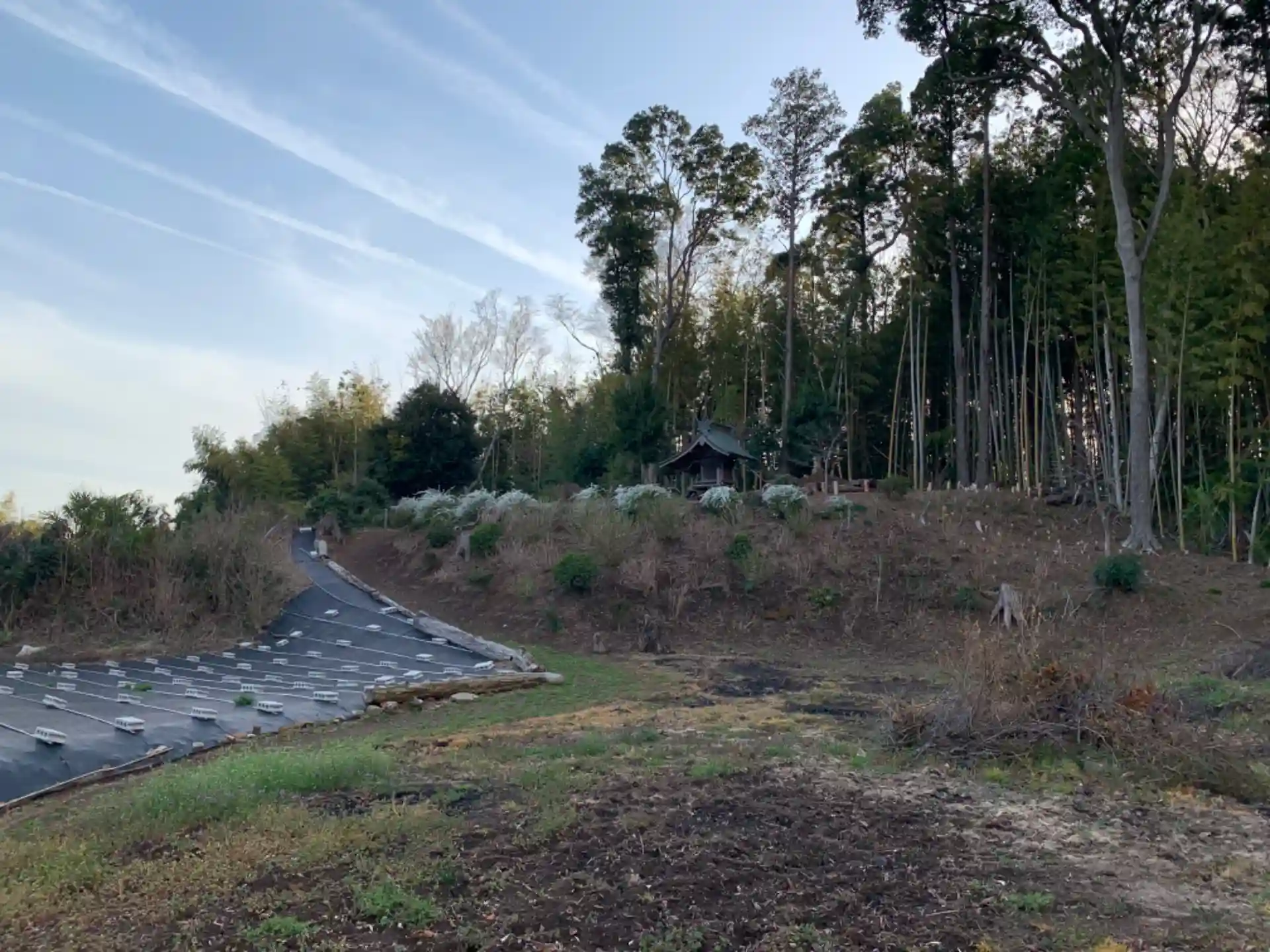 防草シートが敷かれたあたりから入ることができます。規模感は氏神ですが、大天狗小天狗を備えた金毘羅神社祠があり興味深いです。