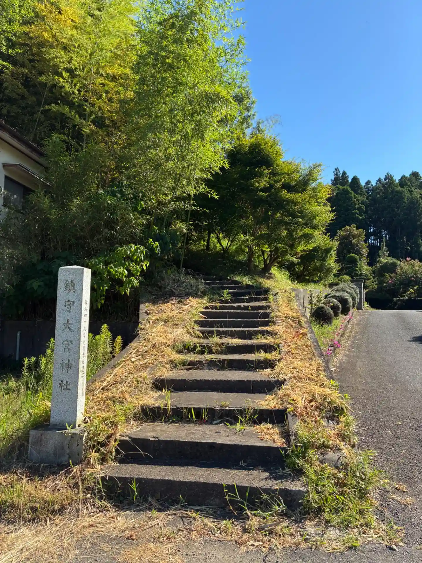 道路から坂道を1,2分登って到着。周りは田んぼと民家み…