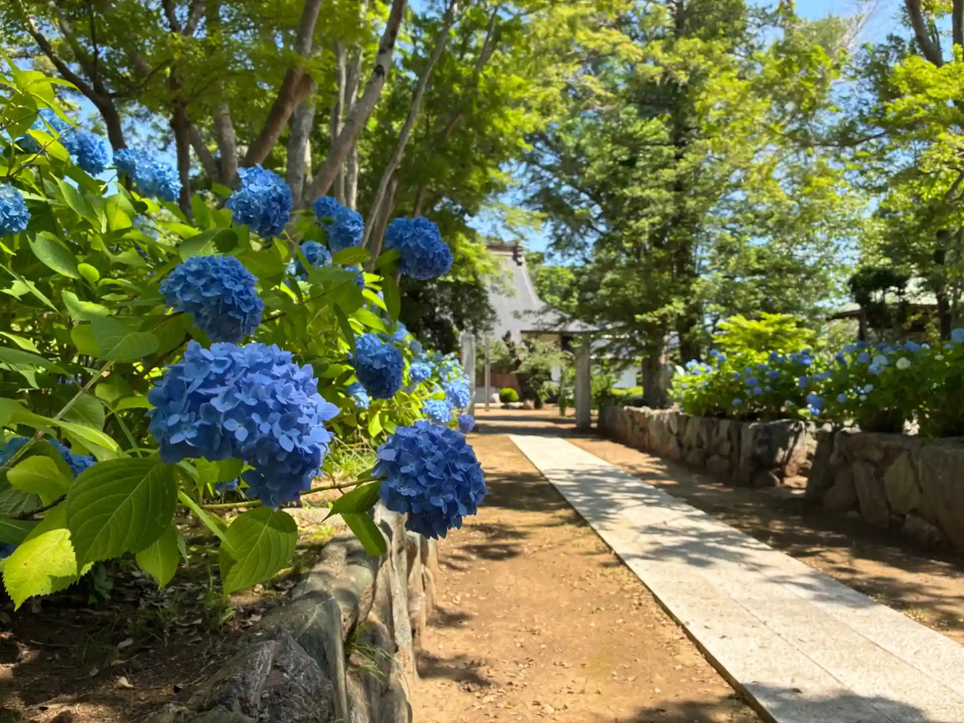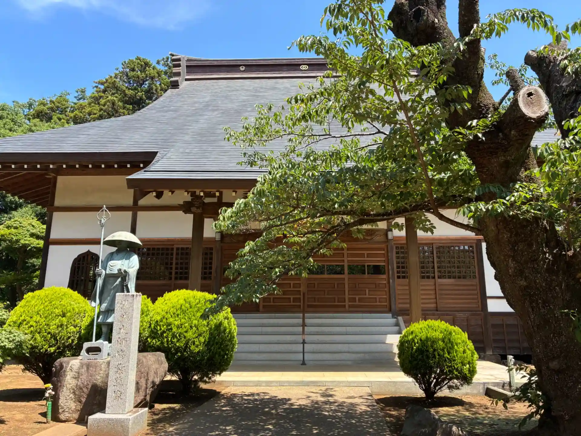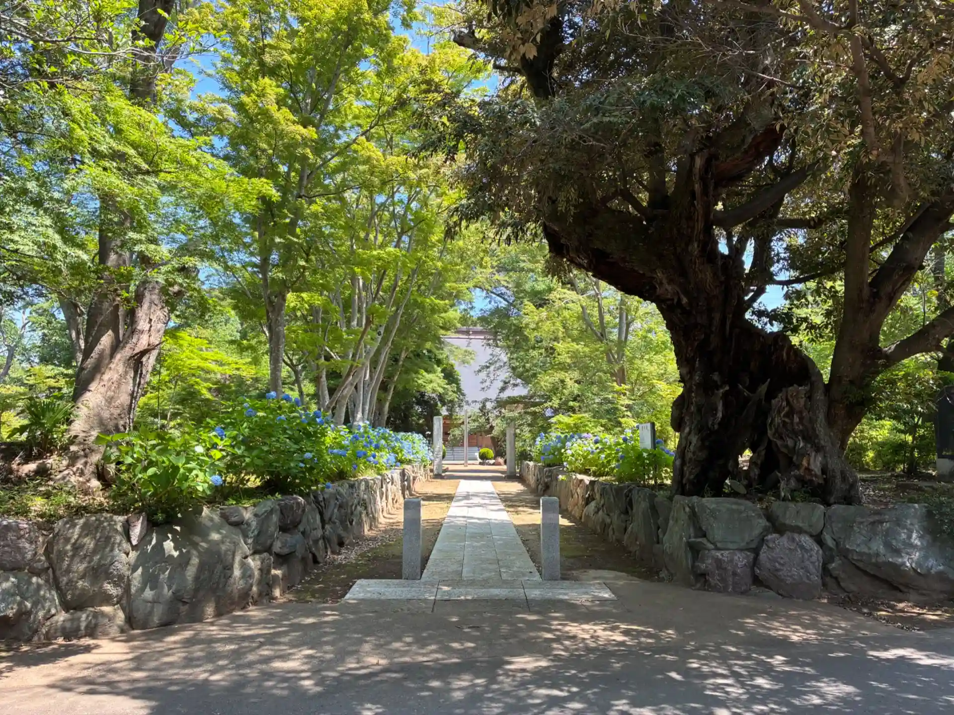 ユーカリが丘線線の内側にあるお寺。奈良時代の創建で、千葉一族の臼井氏が再興に関わりました。参道では椎の古木と紫陽花並木が見られます。