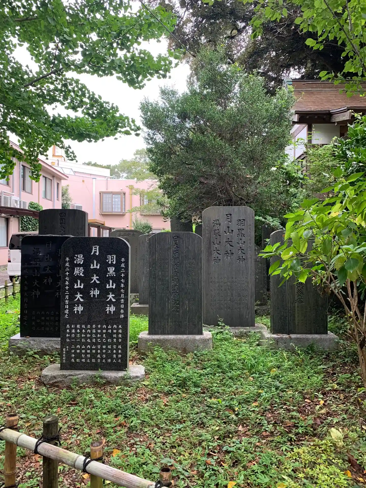 介護施設の関係者用駐車場の奥にあります。大きな椎に寄り添うように建っています。三山碑など石碑が並ん…