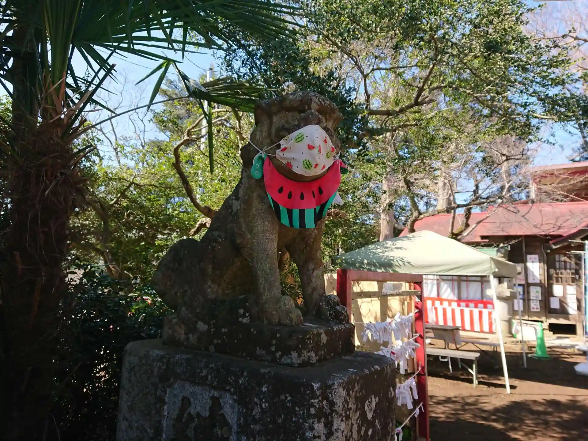 狛犬のマスクもちゃんとスイカ柄。