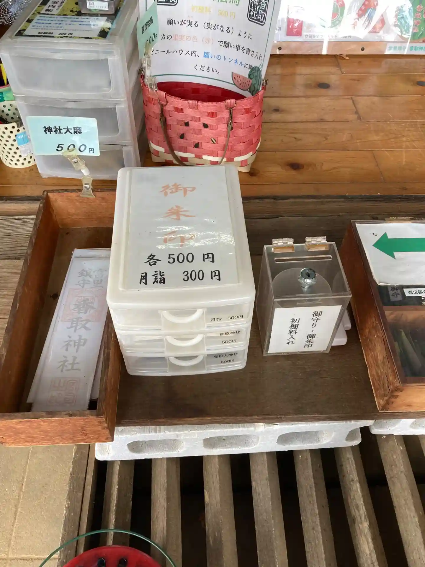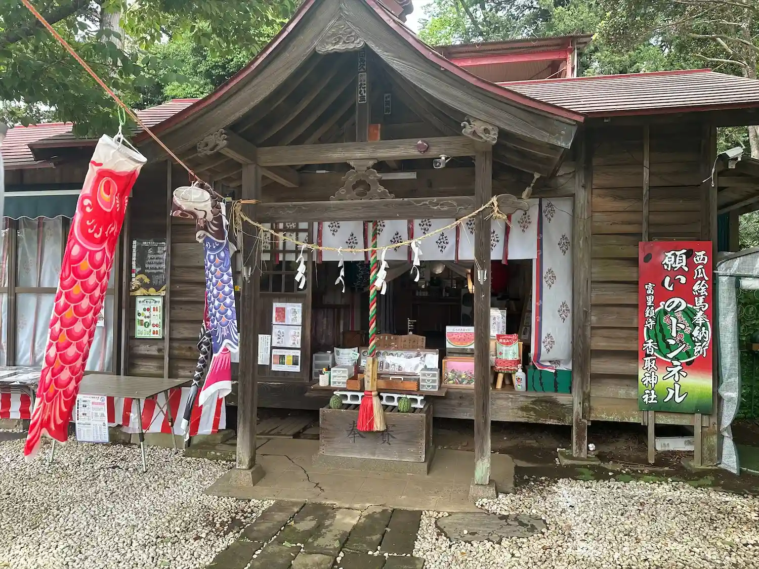特別大きな神社ではありませんが、富里名物のスイカにあやかった各種グッズが人気の神社。