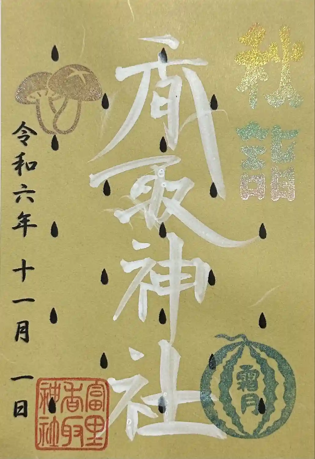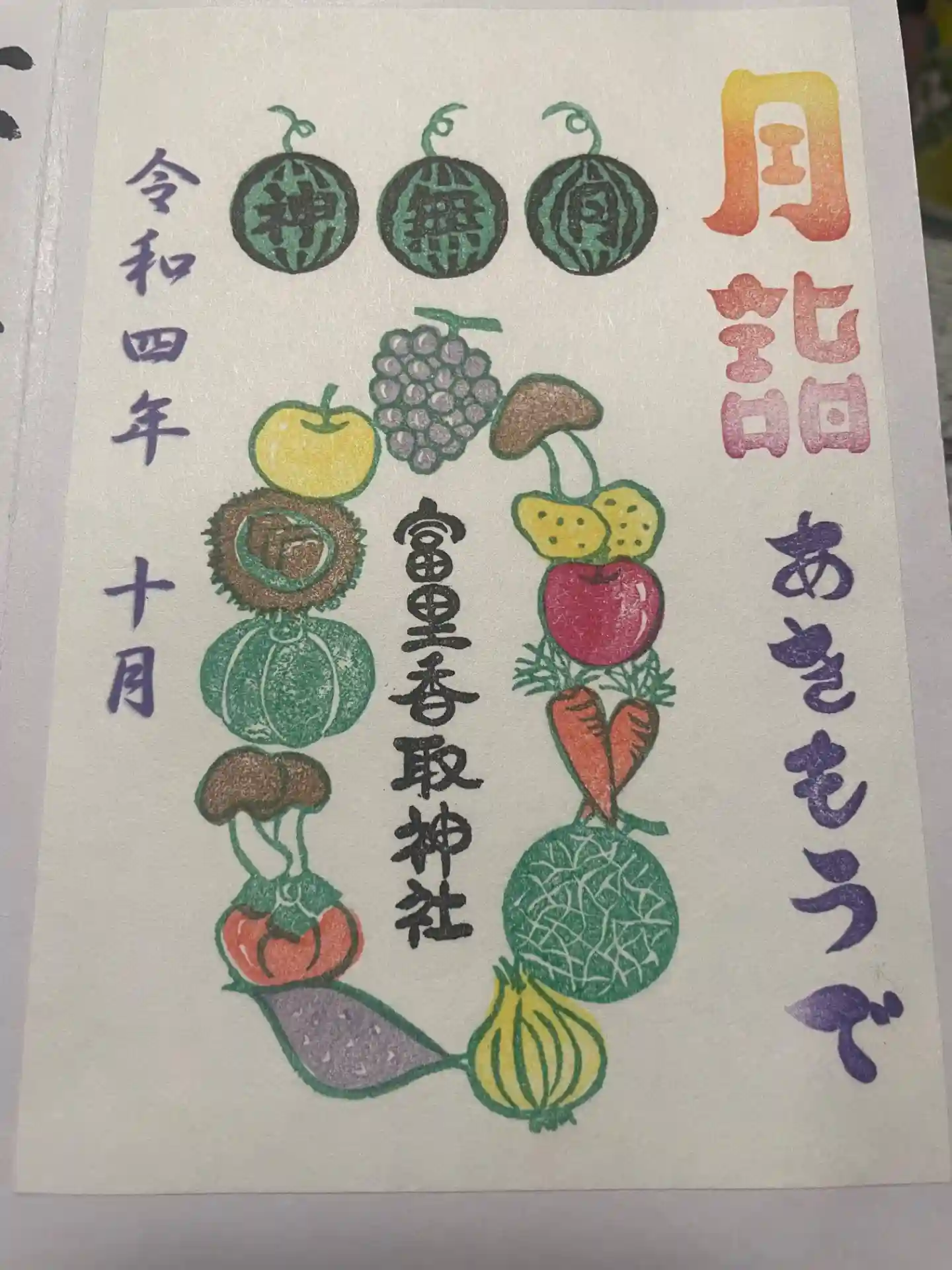 かなりインパクトがある神社ですね。富里市は昔からスイカの名産地🍉。そのスイカのデザインの御朱印、御…