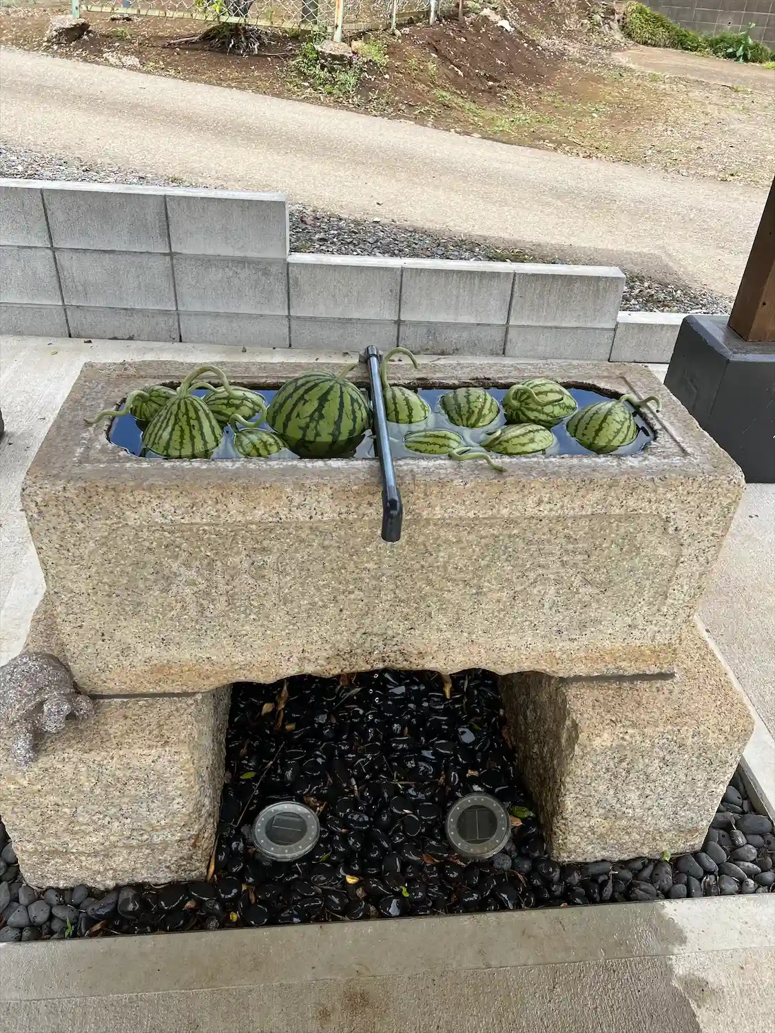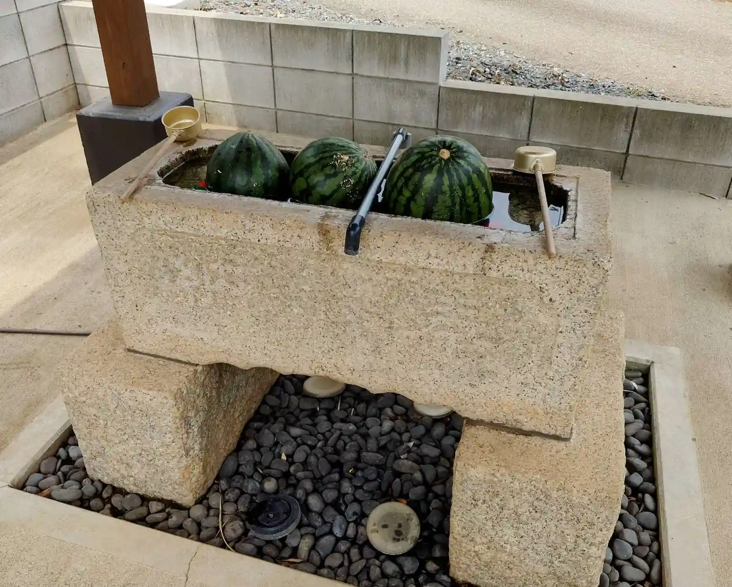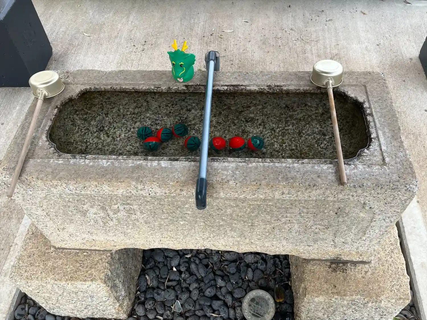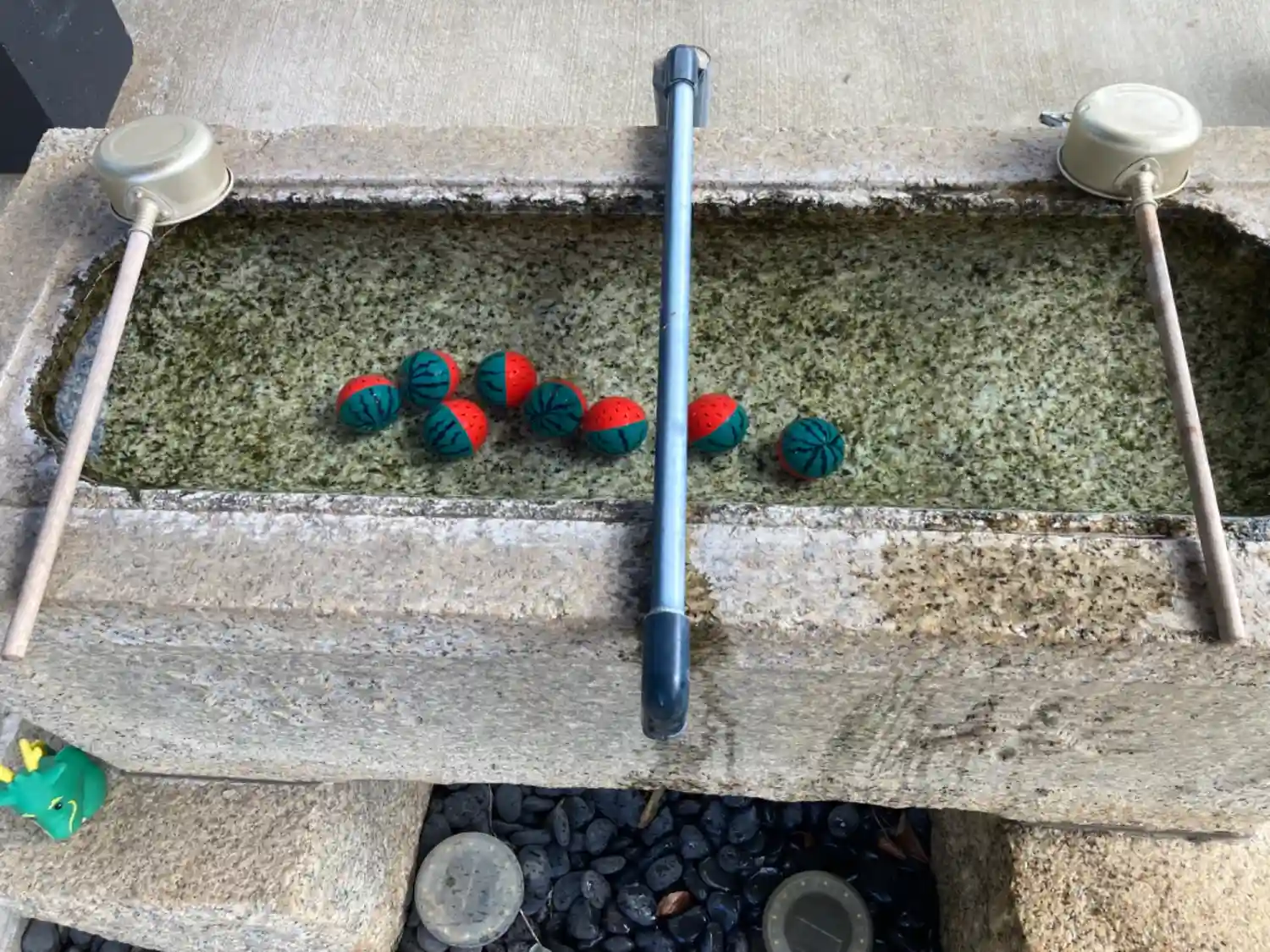 手水。ゴルフボールがスイカ柄に・・・。