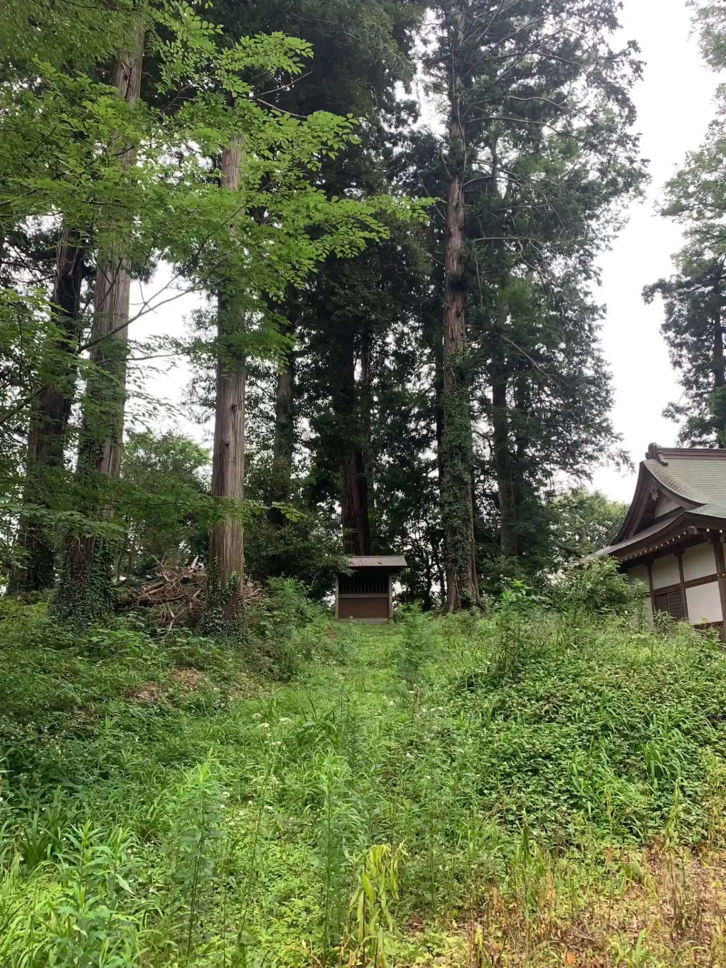 谷津田沿いの道から脇道に逸れたところにある神社。周囲一帯は一面の杉林だったようですが、切り開かれて日当たりが良くなっていました。
