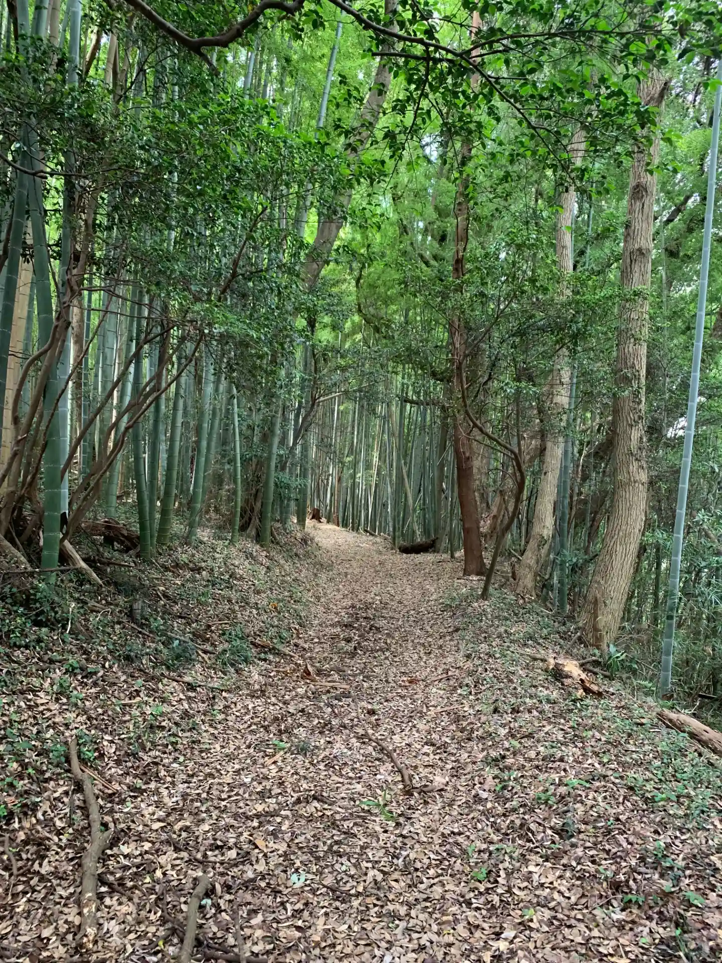 法眼寺裏から登るか、西側の古道から行くことができます。古道はいい感じの竹林で、道中にはこれまたいい…